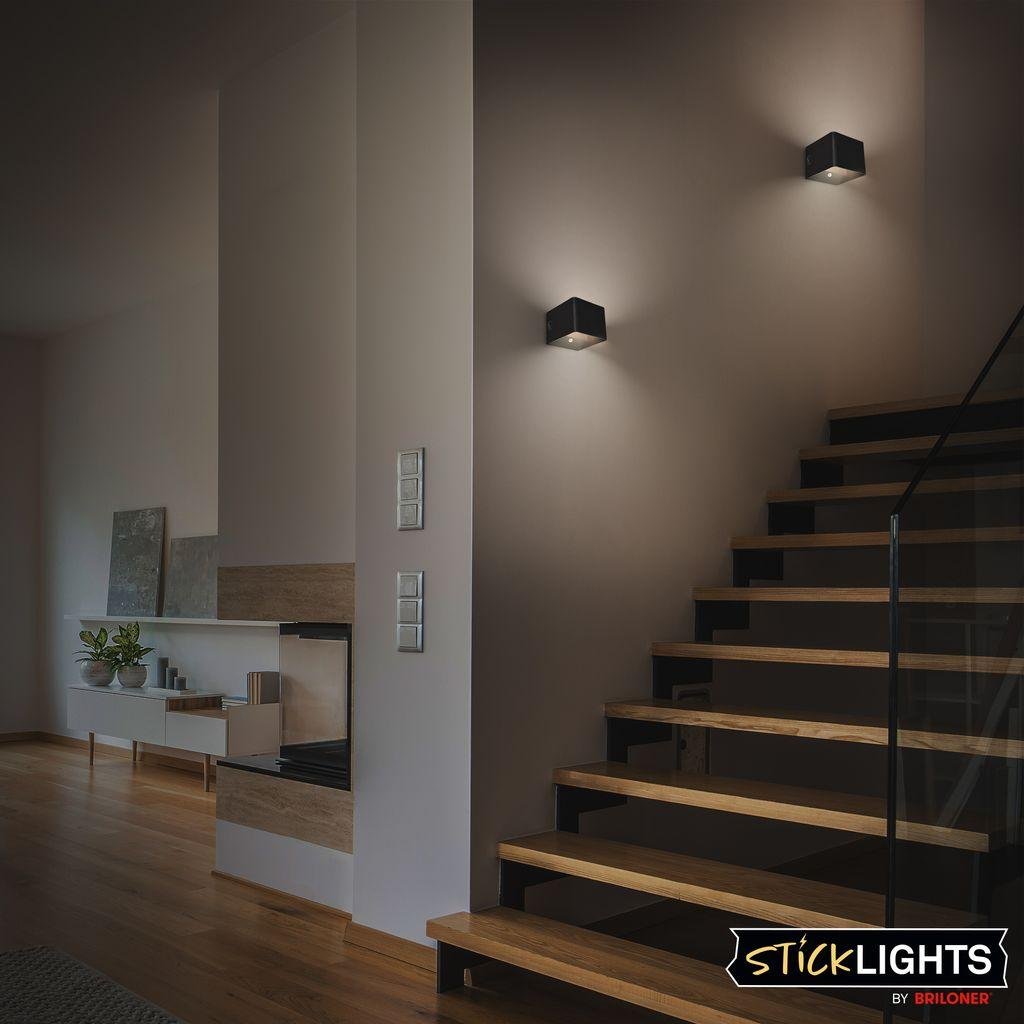 Borra nástěnné svítidlo - 1,5W, 100lm, bezdrátové, LED, s pohybovým čidlem, černé - BRILONER