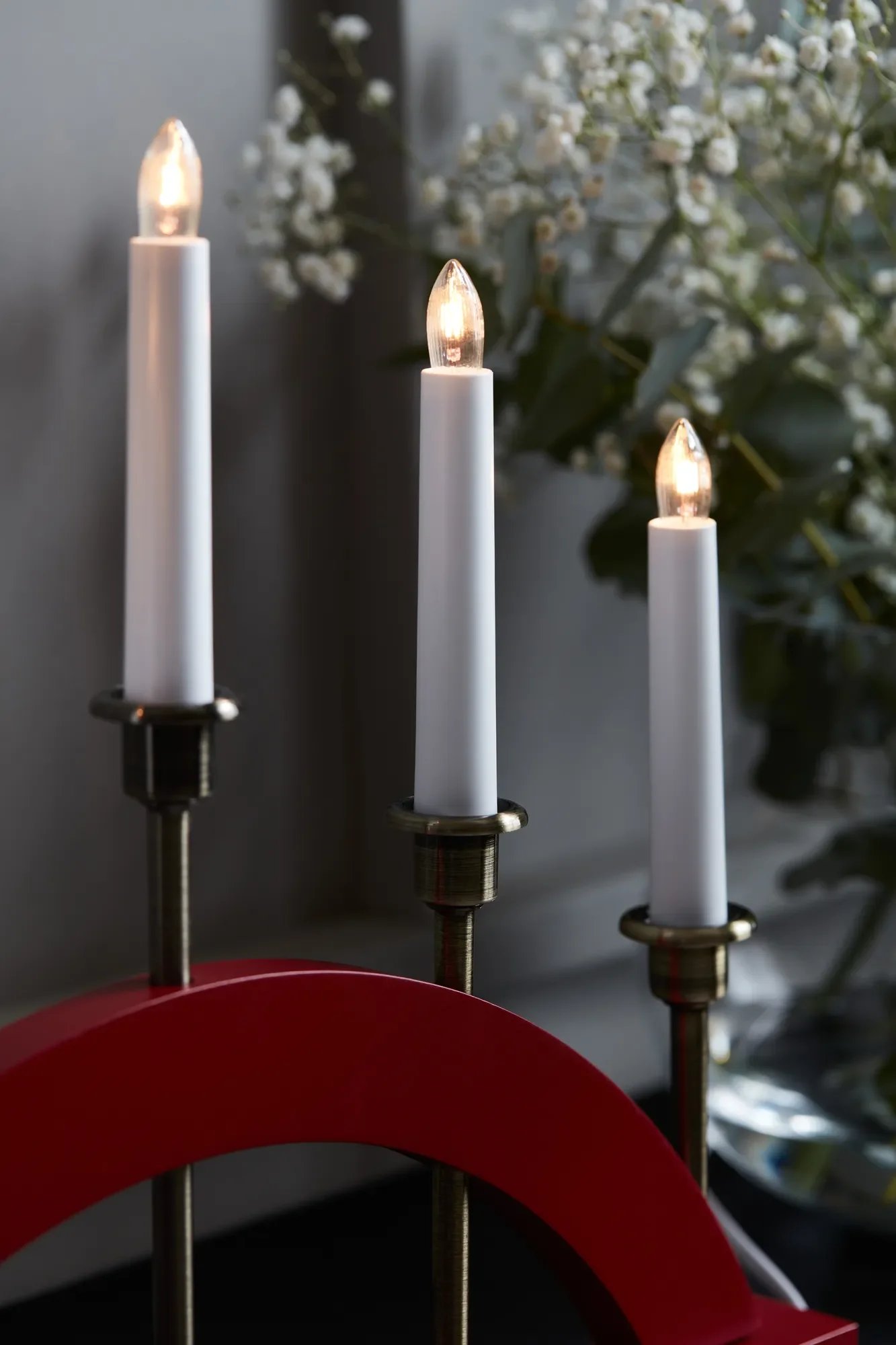 Díky délce kabelu lze svícen jednoduše umístit i do větších okenních rámů nebo na komodu. Výměnné žárovky E10 zaručují snadnou údržbu a možnost použít moderní LED zdroje s nízkou spotřebou.