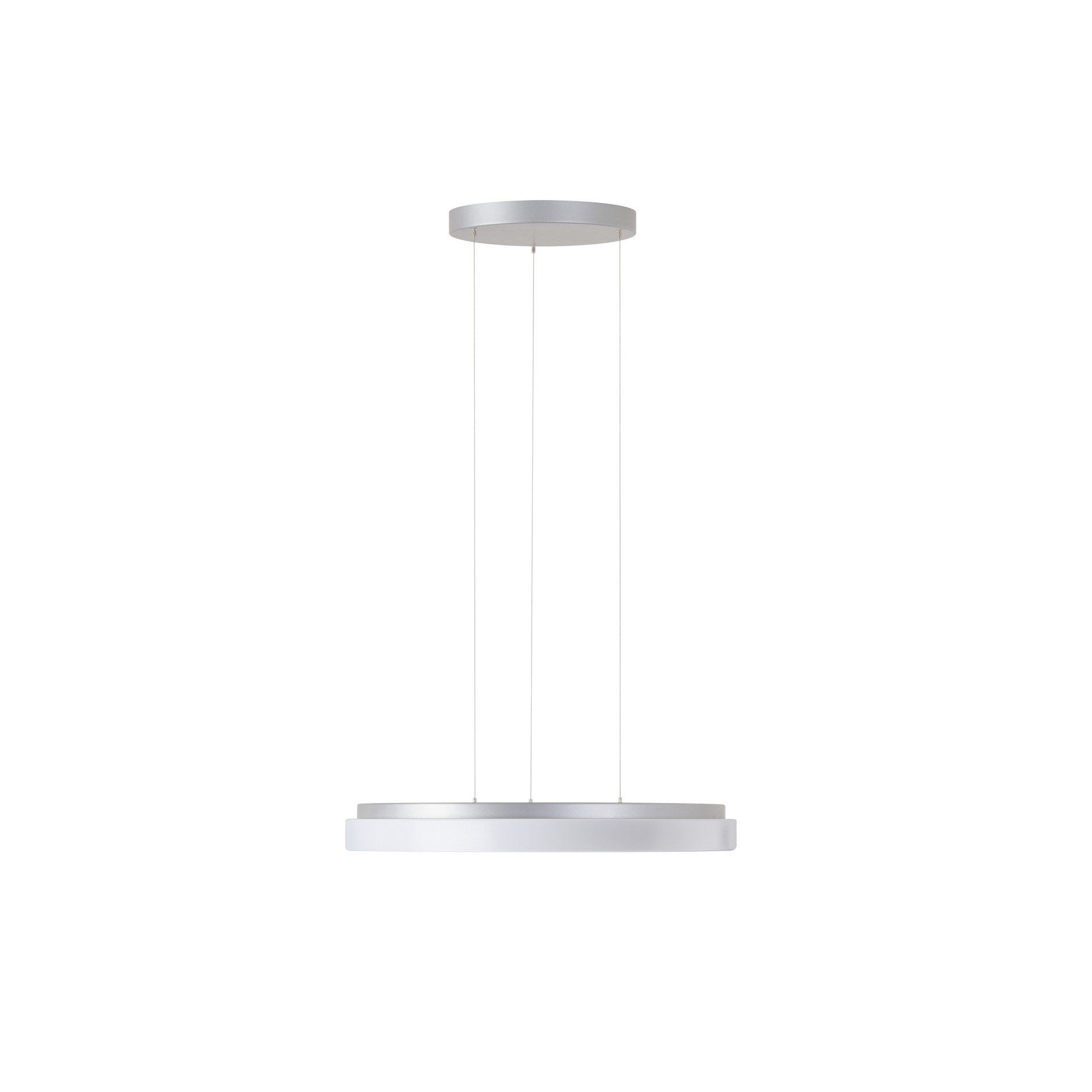 Stříbrné závěsné LED svítidlo ON/OFF a polykarbonátové stínidlo. Lankový závěs (SELV, bezkabelový) o délce 100 cm.