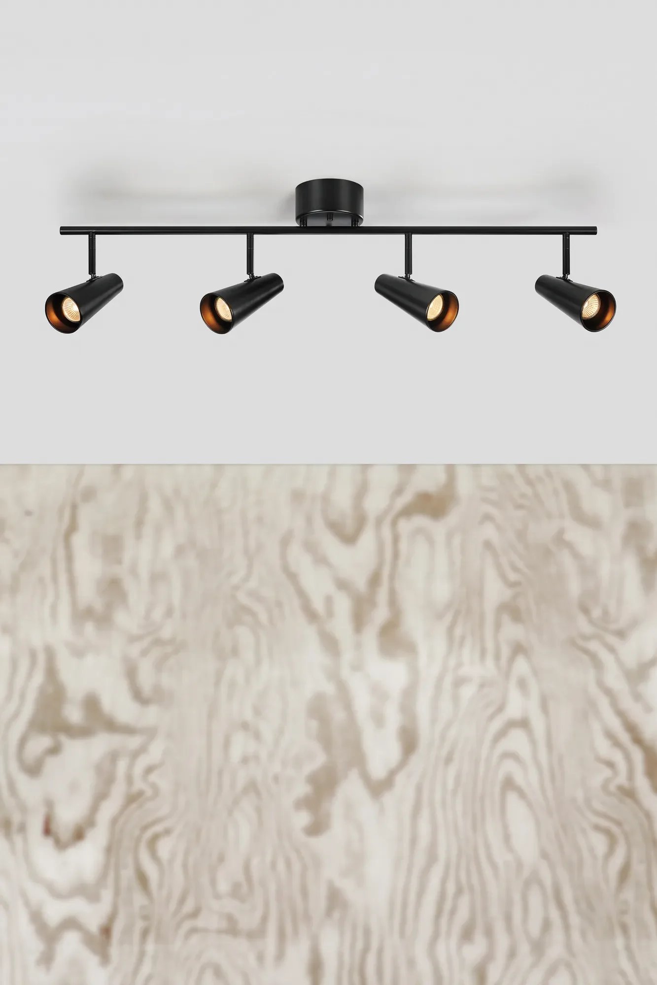 Stropní bodové svítidlo Markslöjd Crest v elegantní černé matné úpravě je ideálním řešením pro moderní interiéry, kde je kladen důraz na funkčnost i design. Čtyři nastavitelná stínidla ve tvaru kuželu umožňují přesně nasměrovat světlo tam, kde jej nejvíce potřebujete, ať už v obývacím pokoji, kuchyni nebo pracovně. Minimalistické skandinávské linie svítidla podtrhují jeho univerzální využití a zvýrazní jakýkoliv moderní interiér.