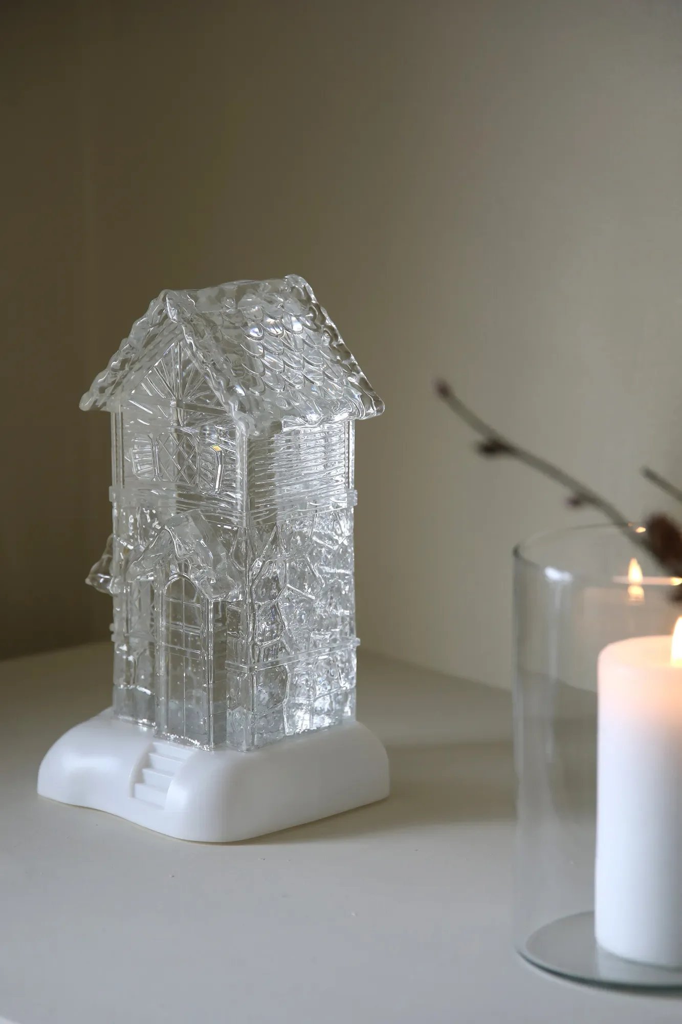 Domeček Dale zaujme detailním zpracováním, kvalitním materiálem a efektním rozptylem světla v úhlu 360°. Čirá akrylová hmota působí luxusně a zároveň jemně odráží světlo, což umocňuje slavnostní dojem i v moderních interiérech. Výška 26 cm a decentní šířka 13 cm umožňují snadné umístění na většinu stolů či polic, aniž by dekorace působila rušivě.