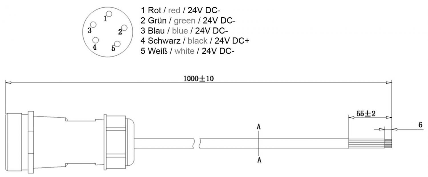 Přívodní kabel Deko-Light Weipu HQ 12/24/48V – 5-pólový kabelový systém, 1000 mm