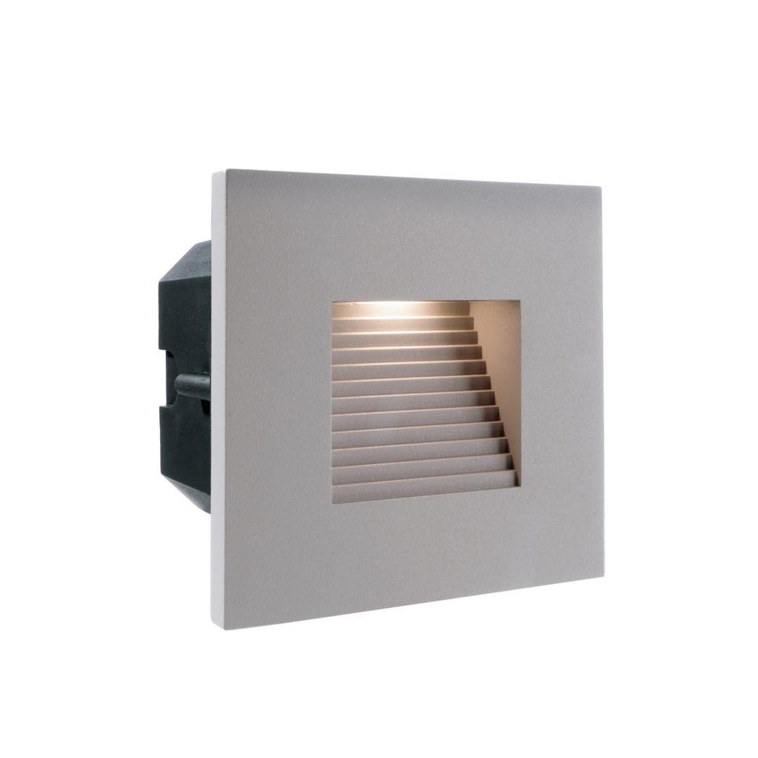 Minimalistický hranatý tvar a decentní světle šedá barva v kombinaci se stříbrno-šedým nádechem vyniknou na každé fasádě, schodišti či podél zahradní cesty. Kryt zajišťuje optimální rozptyl světla díky abstrahlovému úhlu 70° a poskytuje světelný tok 27 lm, což je ideální pro orientační osvětlení a jemné akcenty.