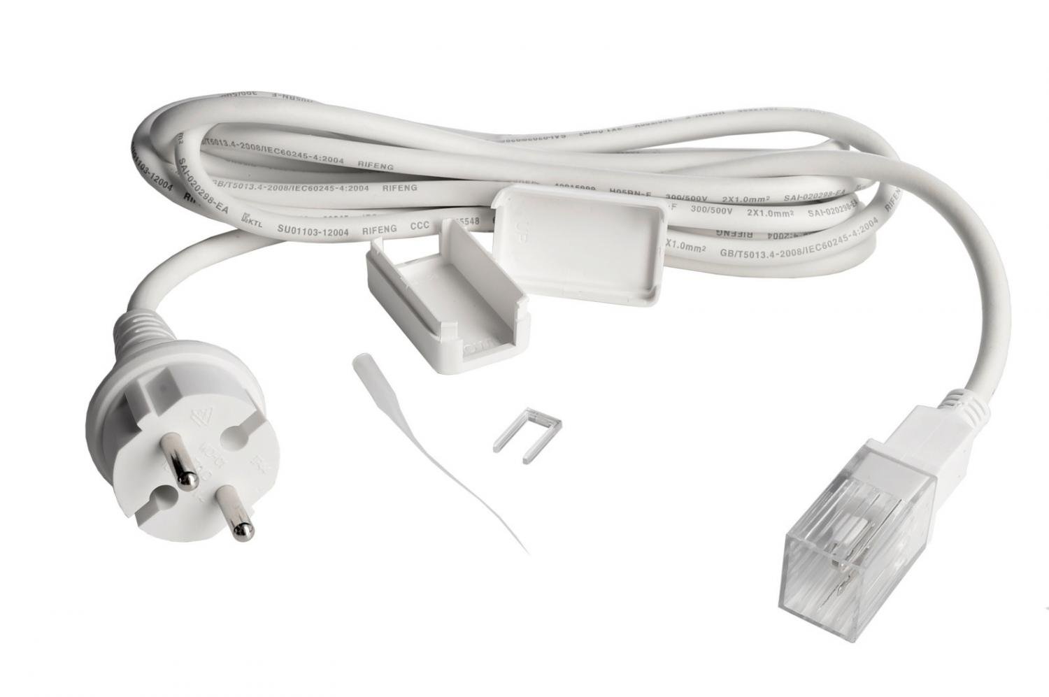 - Snadná instalace: Kabel je vybaven konturovou Schuko zástrčkou pro evropské zásuvky a přípojným konektorem pro 230V LED pásky.