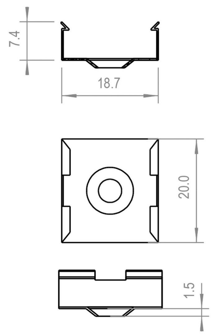 Reprofil, Držák - klip C-12, kov, délka: 20mm, šířka: 18,7mm, výška: 9,4mm, 1 set, 2 ks