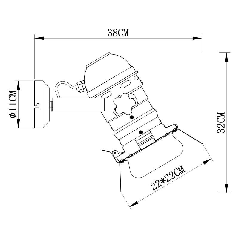 Nástěnné svítidlo, kov černý, filmový styl, nastavitelné klapky, ŠxV: 22x32cm, H:38cm, bez žárovky 1xE27, max. 60W 230V