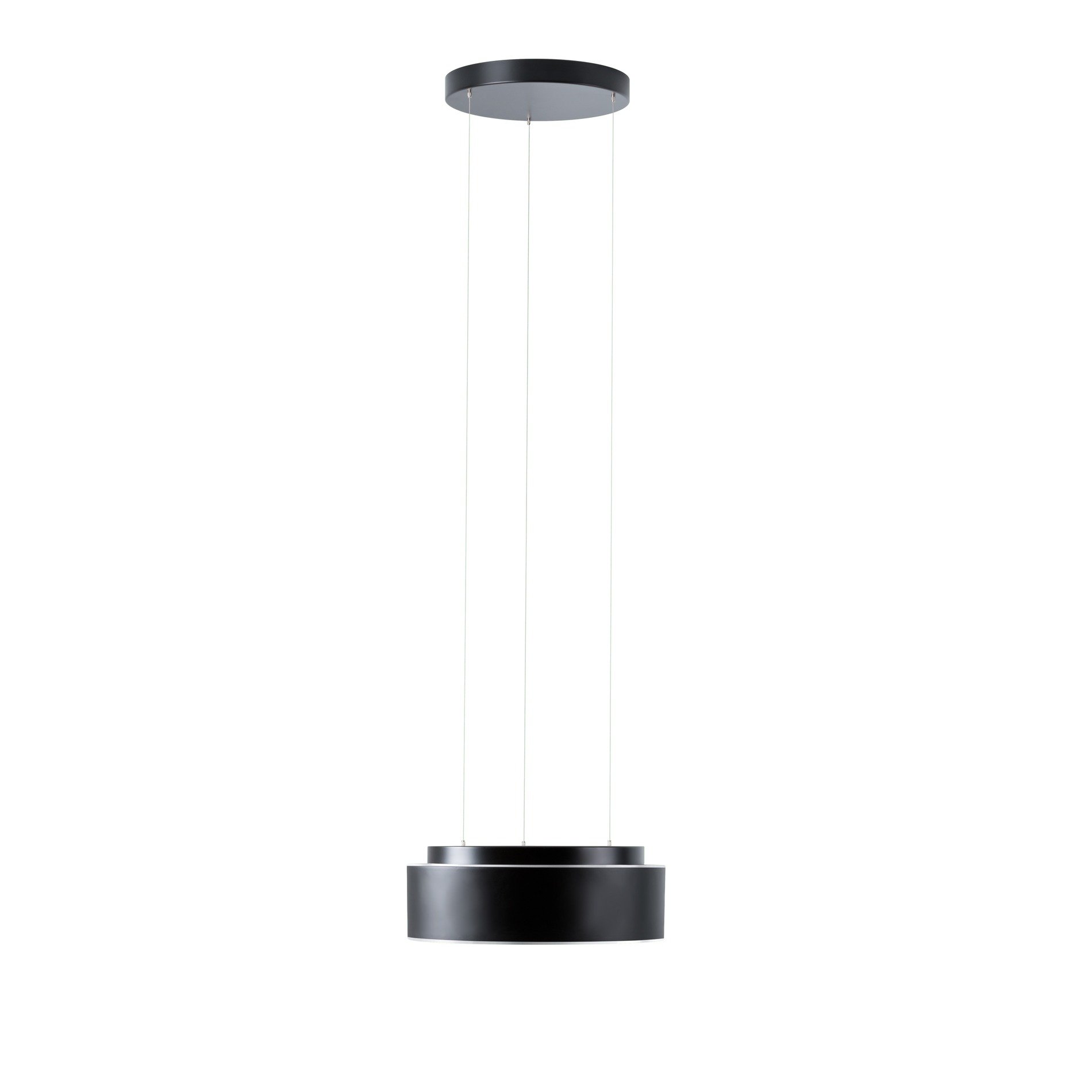 Černé závěsné přepínatelné LED svítidlo ON/OFF a skleněné stínidlo TRIPLEX OPAL s černým dekorativním pruhem