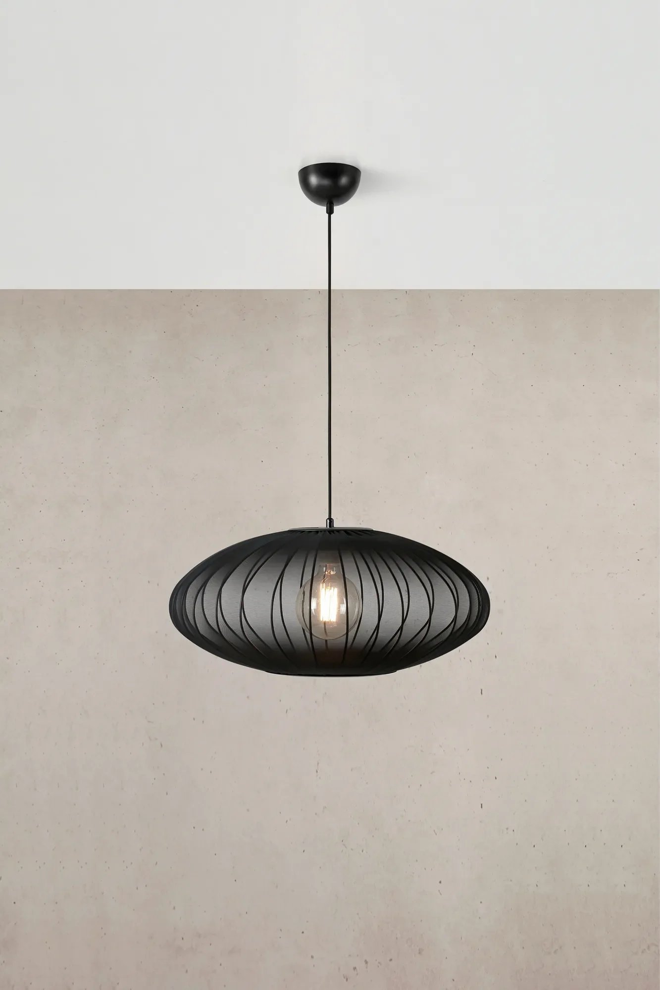 Závěsná lampa Markslöjd Florence v černé barvě představuje ikonické spojení moderní jednoduchosti a nadčasové elegance. Velkorysý oválný tvar o průměru 60 cm je doplněn černým textilním stínidlem, které jemně rozptyluje světlo a vytváří příjemnou atmosféru v obývacím pokoji, ložnici nebo nad jídelním stolem. Díky svému designu vynikne samostatně, ale také ve skupině s dalšími svítidly ze stejné série.