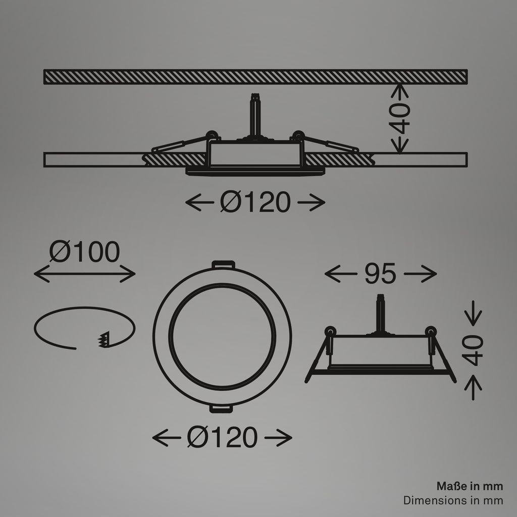Fungo vestavné bodové svítidlo 100mm 3ks sada - 7W, 700lm, LED, stmívatelné, IP65, bílé - BRILONER