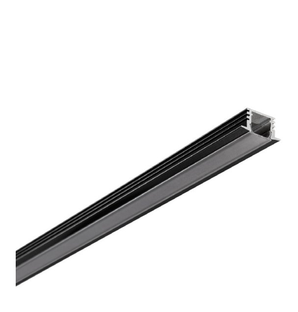 Hliníkový profil BERLINO, černý, s černým difuzorem a krytkami, 200 x 2,5 x 1,2 cm - FANEUROPE