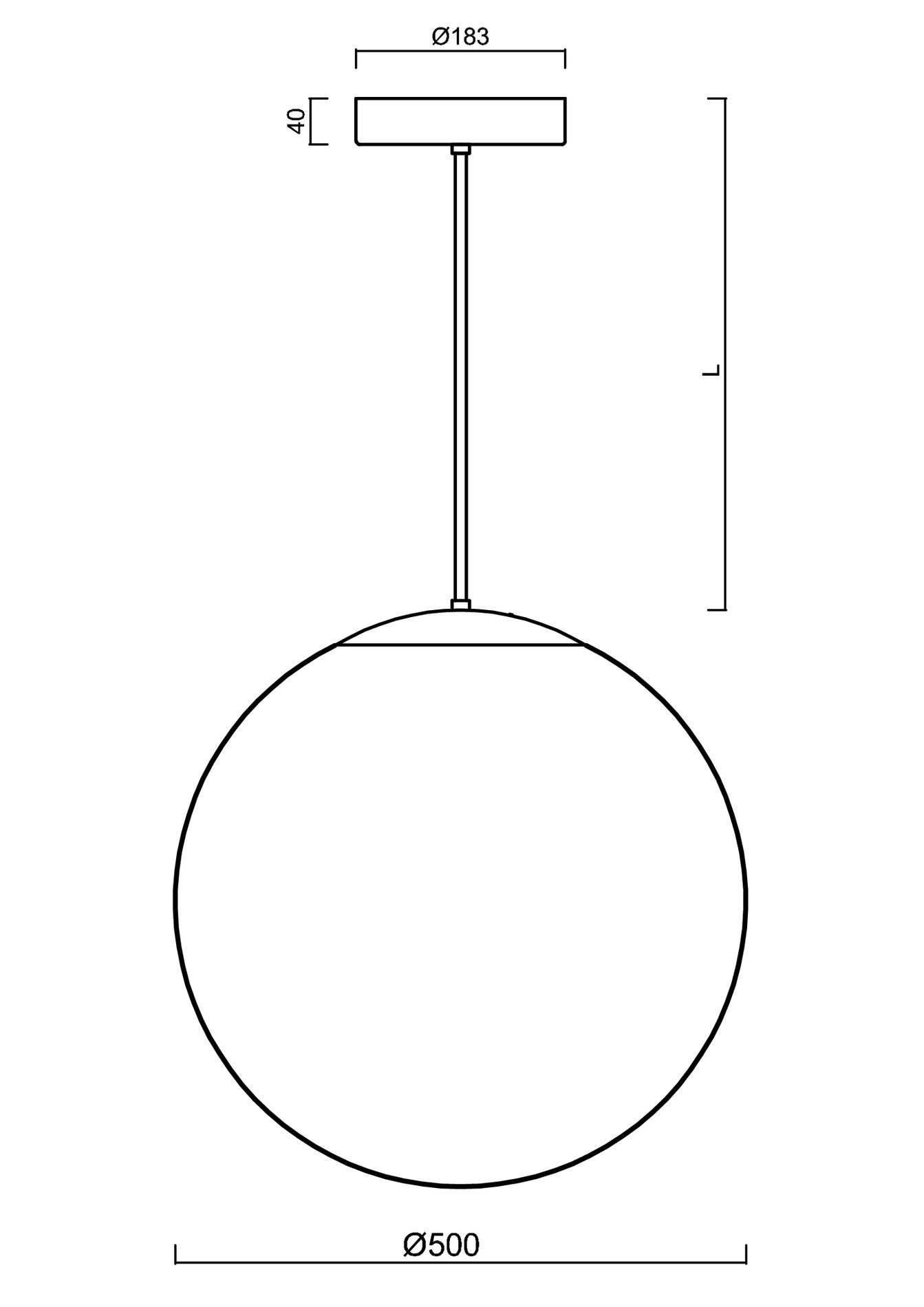 Kulaté závěsné svítidlo s vysokým výkonem HP s průměrem stínidla Ø500 mm. Svítidlo se skládá z tyčového závěsu a PMMA stínidla. Stínidlo je uchyceno ocelovým držákem. Svítidlo je vhodné do interiéru.