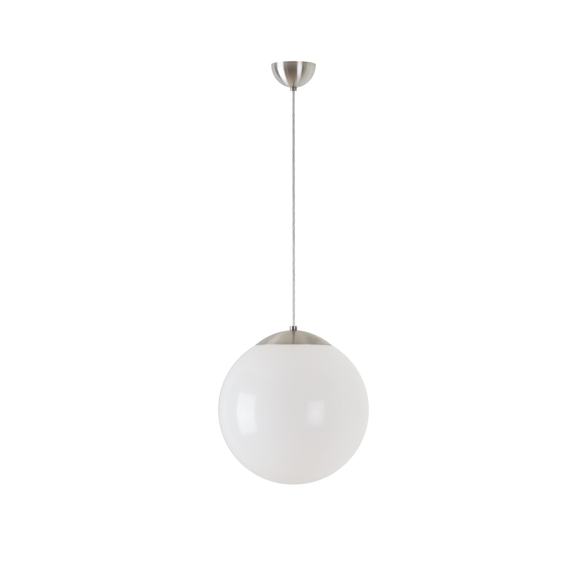 Kulaté závěsné svítidlo s průměrem stínidla Ø300 mm. Svítidlo se skládá z kabelového závěsu a polyetylenového stínidla. Stínidlo je uchyceno ocelovým držákem. Svítidlo je vhodné do interiéru.