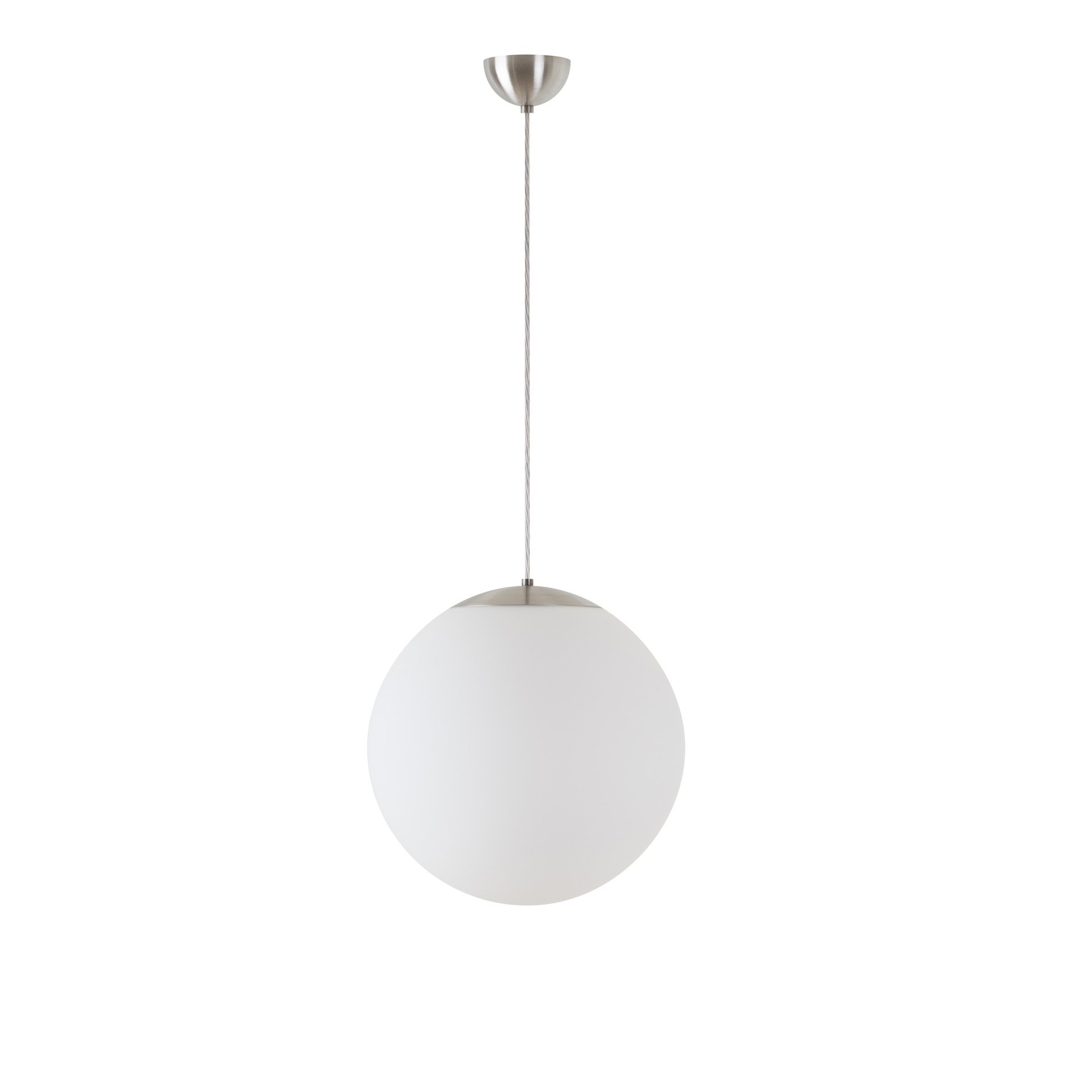 Kulaté závěsné svítidlo s průměrem stínidla Ø400 mm. Svítidlo se skládá z kabelového závěsu a matovaného PMMA stínidla. Stínidlo je uchyceno ocelovým držákem. Svítidlo je vhodné do interiéru.