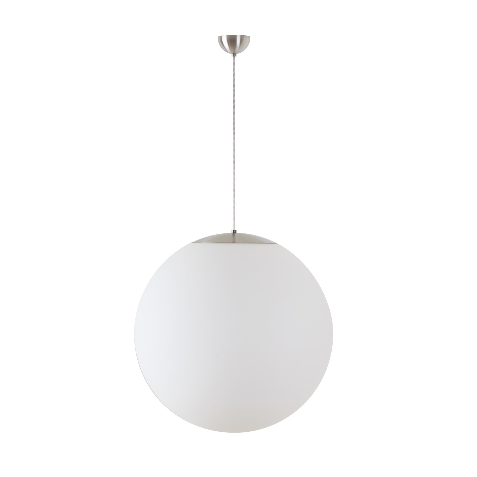 Nerez broušené závěsné LED svítidlo ON/OFF a matované PMMA stínidlo. Kabelový závěs s vnitřním nosným lankem o délce 100 cm.