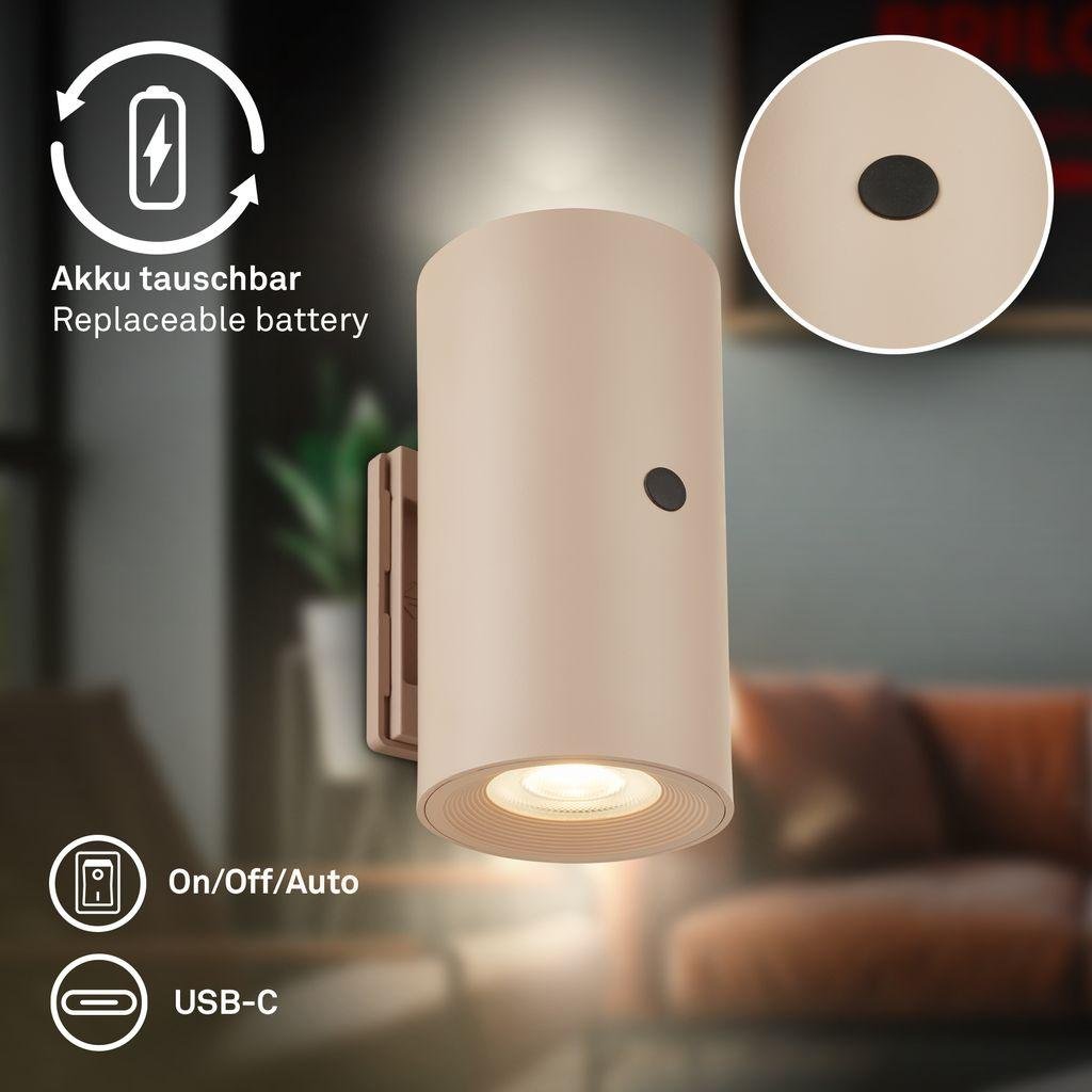 Isy nástěnné svítidlo - 2W, 200lm, nabíjecí, LED, dotykový vypínač, stmívatelné, béžová - BRILONER