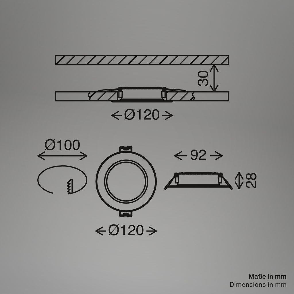 Díky instalačním rozměrům (Ø otvoru 110 mm, vnější průměr 120 mm) zajišťují svítidla jednoduchou a čistou montáž do podhledů i sádrokartonových stropů. Výsledek je vždy precizní a odpovídá nárokům moderních interiérů, kde je důležitá souhra designu a funkce.