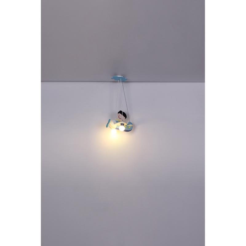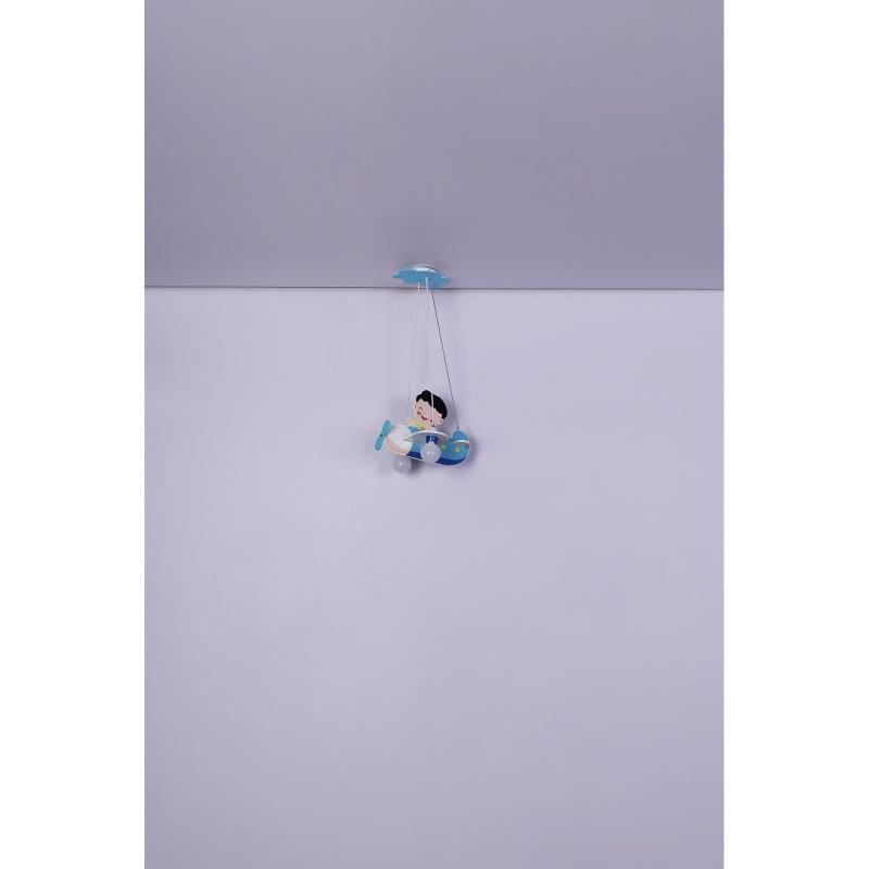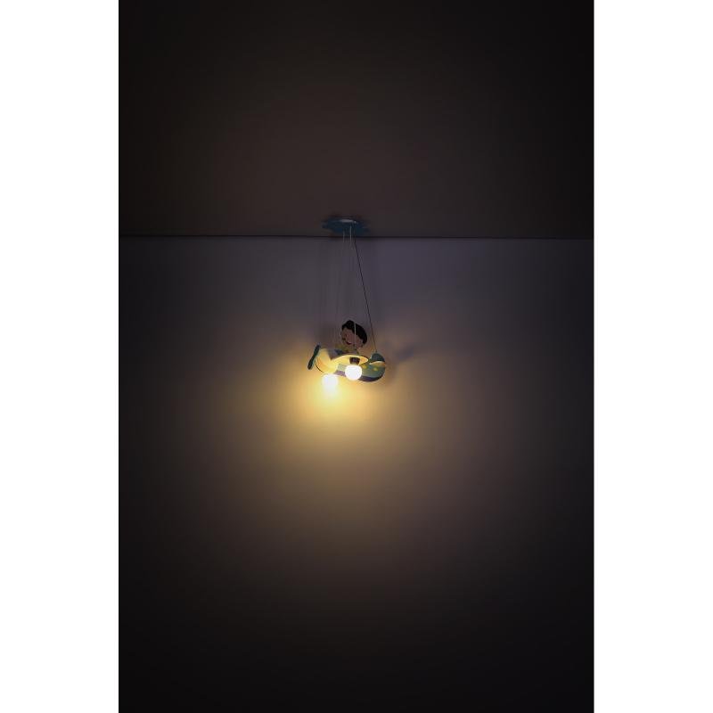 Závěsné svítidlo ze série KITA je ve vzhledu modrého letadla, ve kterém sedí malý chlapec. Svítidlo je vhodné do dětského pokoje. Výška svítidla je 1,2 m, délka 43 cm. Svítidlo má objímky E27, můžete si zvolit libovolný světelný zdroj (max. 1x40W) a určit si intenzitu a barvu světla. Doporučujeme LED zdroje pro úsporu energie a dlouhou životnost.