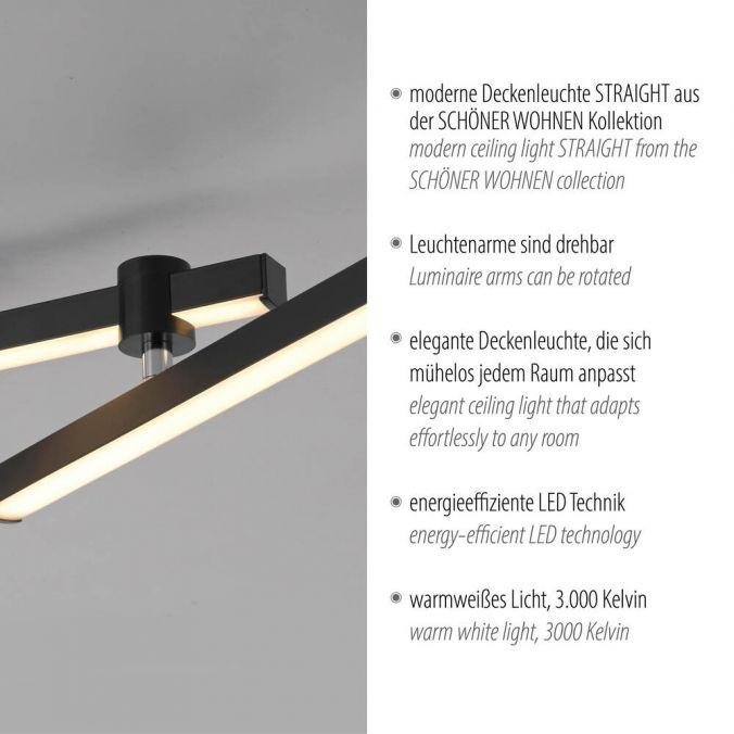 Kód / označení výrobce: Kolekce Schöner Wohnen LED stropní svítidlo STRAIGHT, černá, nastavitelná ramena, 3000K - JUST LIGHT