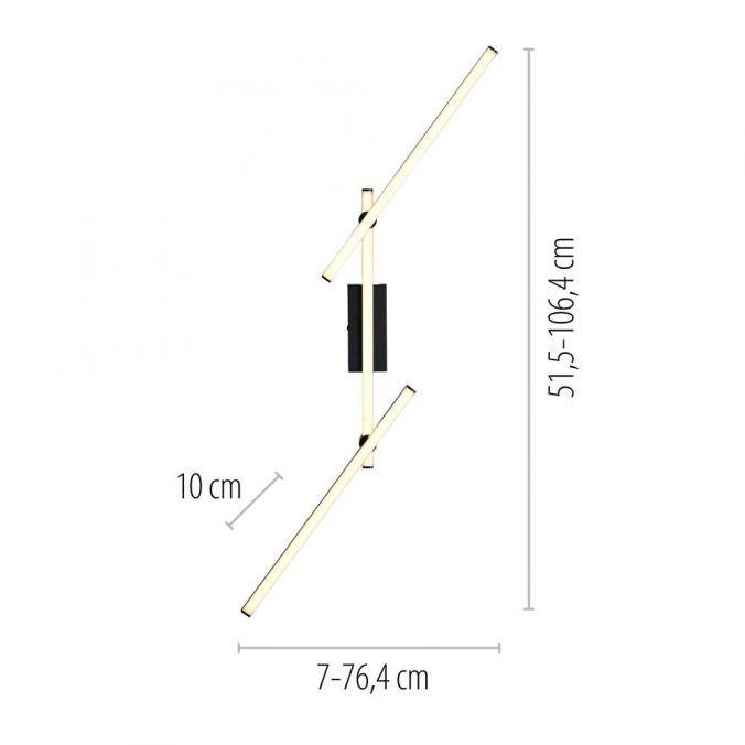 Minimalistický tvar s výrazně lineárními prvky je podtržen černou lakovanou povrchovou úpravou. Konstrukce svítidla je z hliníku, což zajišťuje stabilitu a dlouhou životnost. Otočná ramena umožňují individuální nastavení směru světla, což je praktické zejména v prostorech s proměnlivými požadavky na osvětlení.
