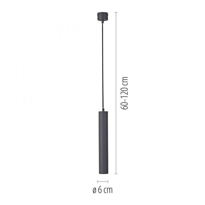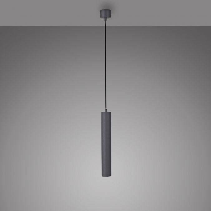 Tělo svítidla tvoří úzký válec z černě lakovaného železa, zavěšený na tenkém kabelu s možností výškového nastavení. Minimalistické provedení bez dekorativních prvků podporuje čistý a funkční vzhled, který je vhodný do moderních, industriálních i skandinávských interiérů.