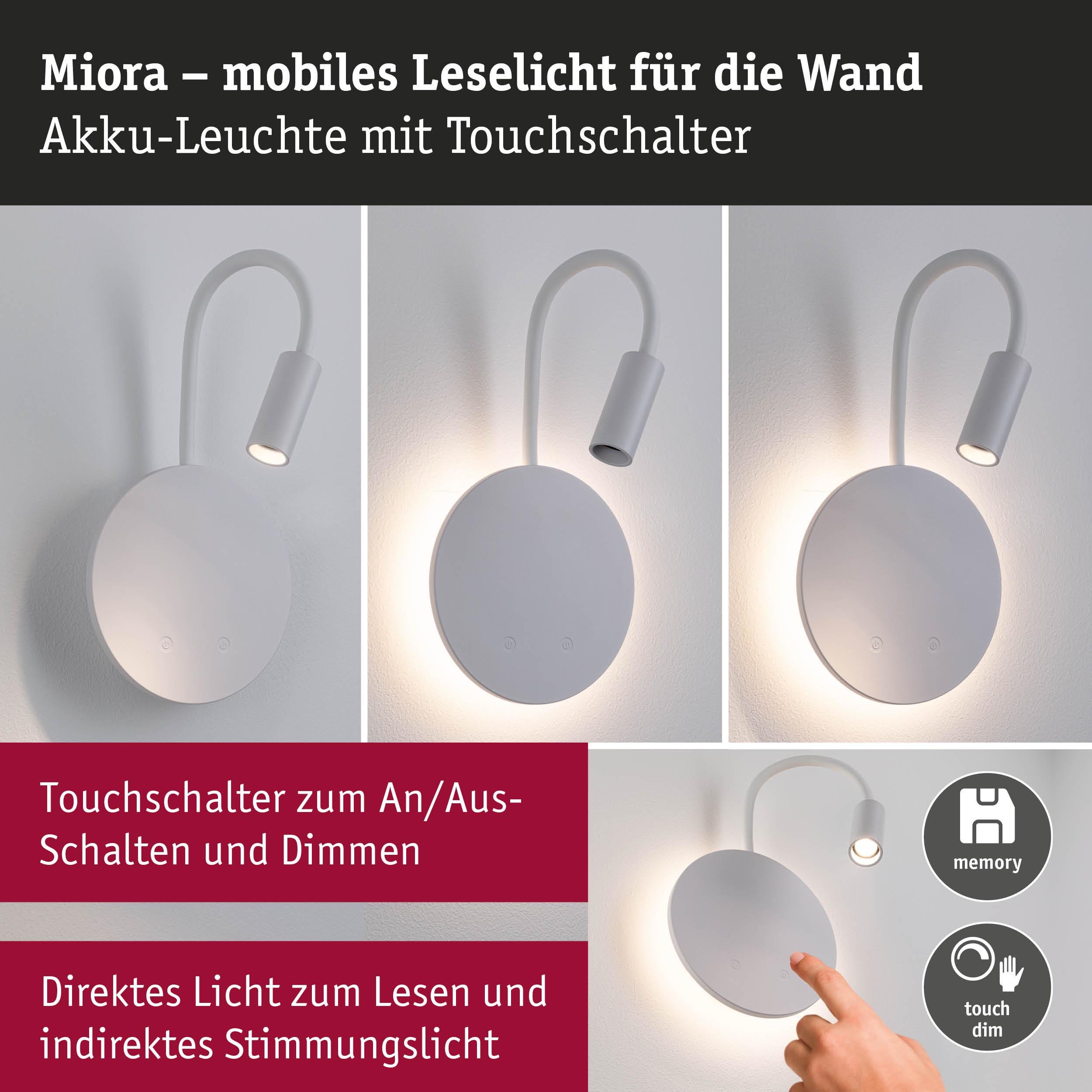 LED nabíjecí nástěnné svítidlo Miora 2700K / 3,7V 0,6W / 0,7W stmívatelné bílá - PAULMANN