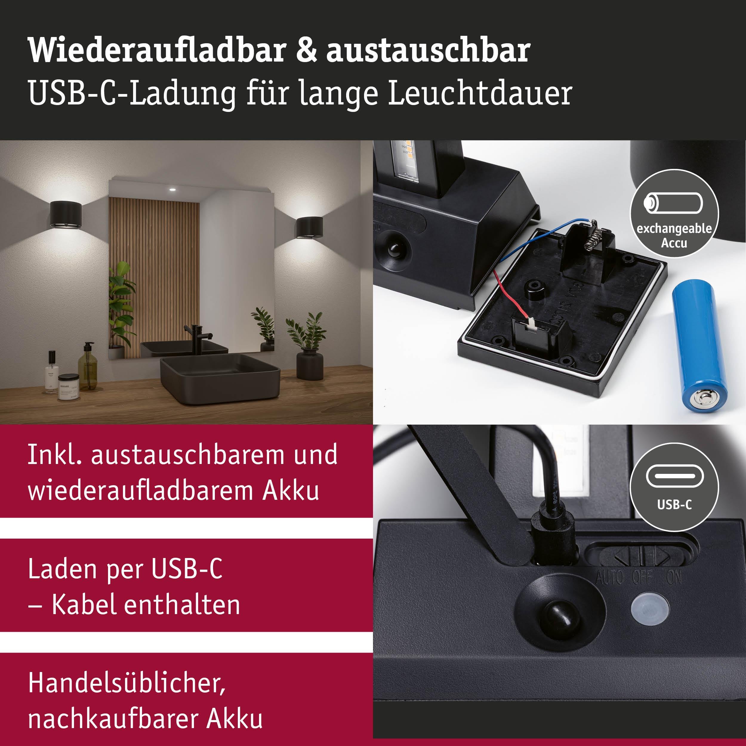 LED nabíjecí nástěnné svítidlo Nyora IP44 3000K 135x120mm 2x1W černá - PAULMANN