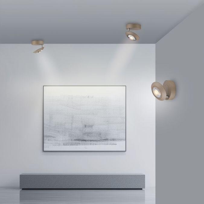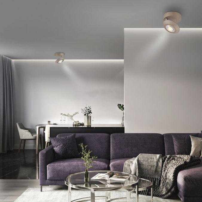 - Otočný a nastavitelný spot: Hlava svítidla je otočná a výkyvná, díky čemuž lze světelný paprsek přesně nasměrovat na požadované místo – ideální pro akcentaci uměleckých děl, zvýraznění nábytku nebo jako flexibilní celoplošné osvětlení.