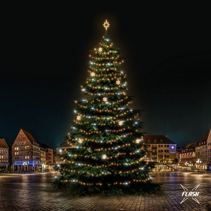 LED světelná sada s Flash efektem je navržena speciálně pro slavnostní a reprezentativní výzdobu vánočních stromů o výšce 21–23 metrů. Tato sada je ideální volbou pro náměstí, veřejná prostranství či firemní areály, kde vynikne svým elegantním designem a efektivní světelnou kompozicí v teplé bílé barvě. Flash efekt dodává světelné výzdobě dynamiku a exkluzivitu.