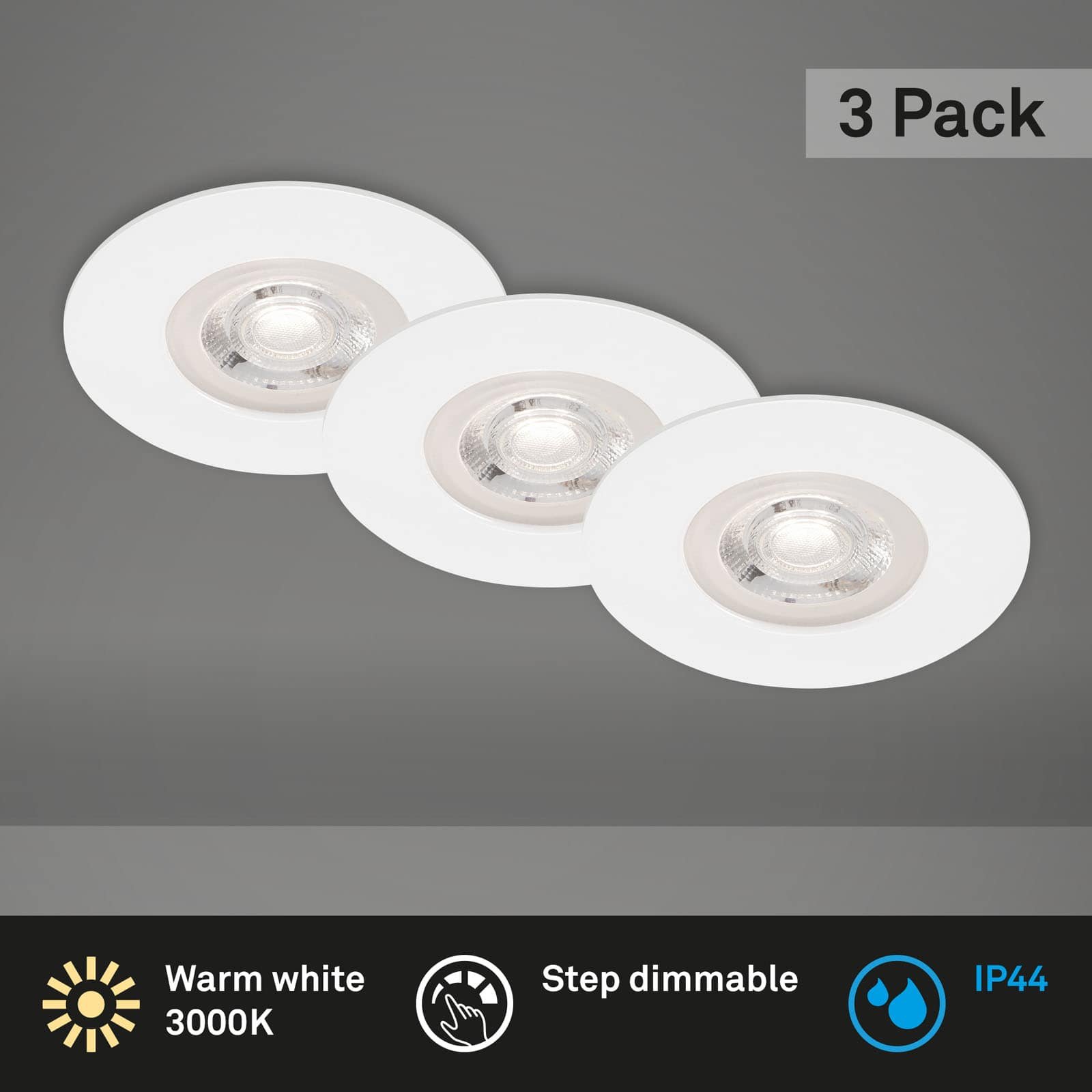 BRILONER LED vestavná svítidla, průměr 9 cm, 3x LED, 4,9 W, 480 lm, bílé, IP44 – sada 3 ks (BRI 7036-036)