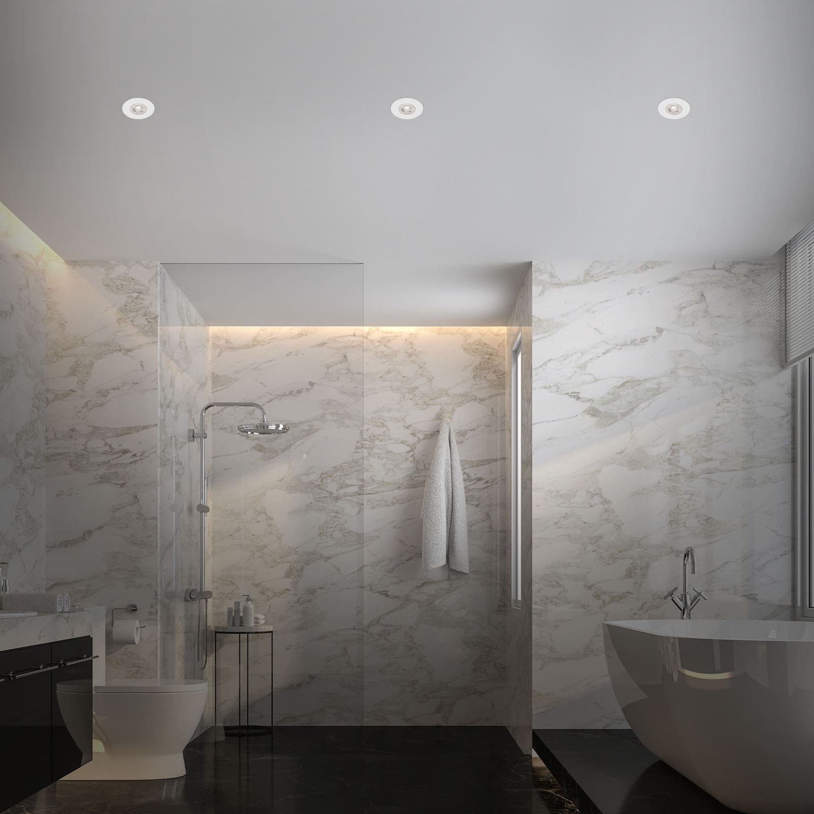 - Bezpečné použití i v koupelnách – díky vysokému krytí IP44 jsou svítidla chráněna proti stříkající vodě a vhodná také do prostor s vyšší vlhkostí.