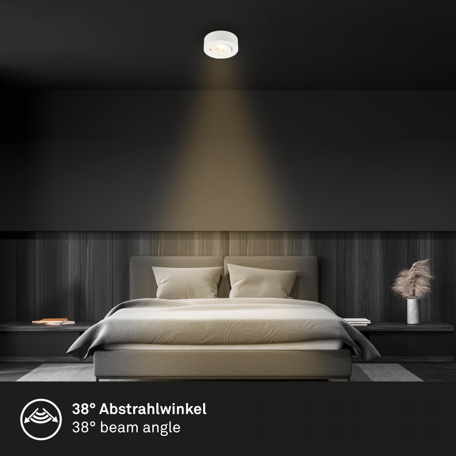 LED vestavné / přisazené bodové svítidlo BRILONER – Ø90 mm, 5W, 230V, teplá bílá, nastavitelné, bílé