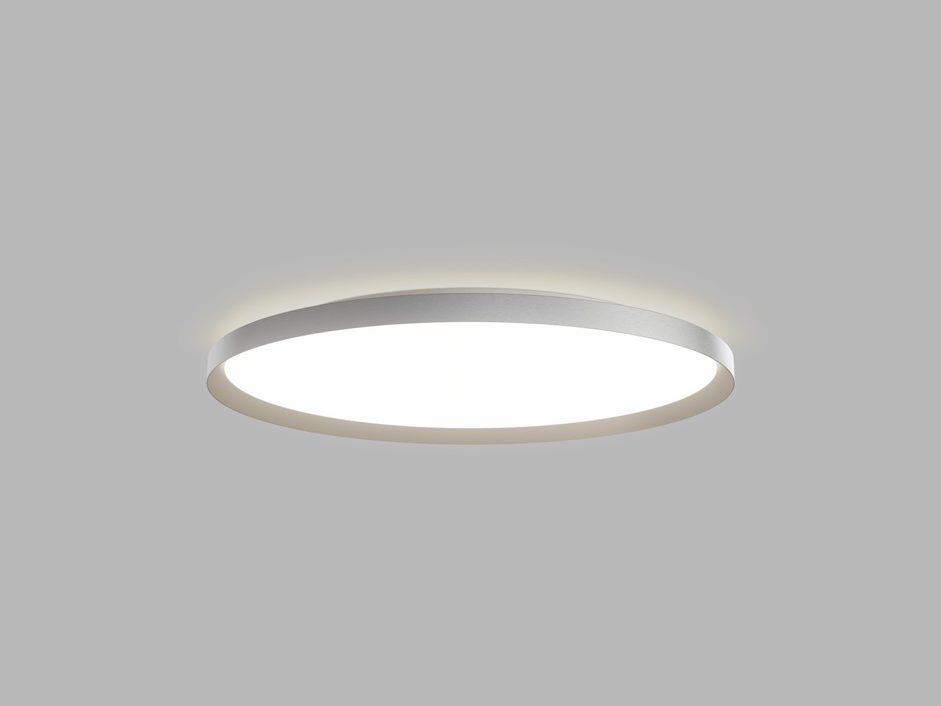 Svítidlo má elegantní kruhový tvar s průměrem 800 mm a výškou 70 mm. Tělo je vyrobeno z kovu v matném niklovém provedení (RAL 7032), difuzor je z opálového PMMA, což zajišťuje rovnoměrné rozptýlení světla bez oslnění. Minimalistický design podtrhuje čistotu linií a decentní vzhled v interiéru.