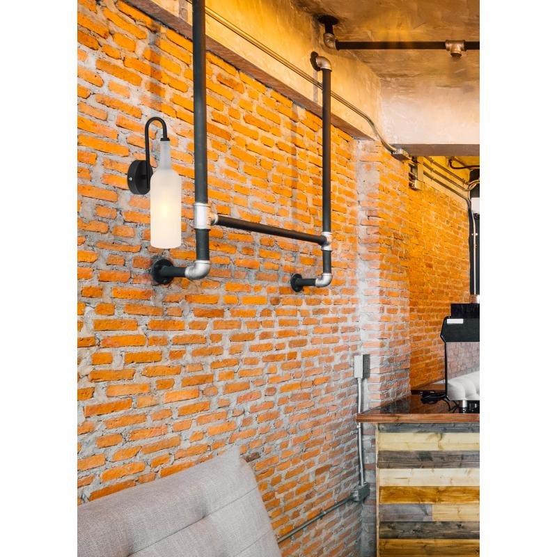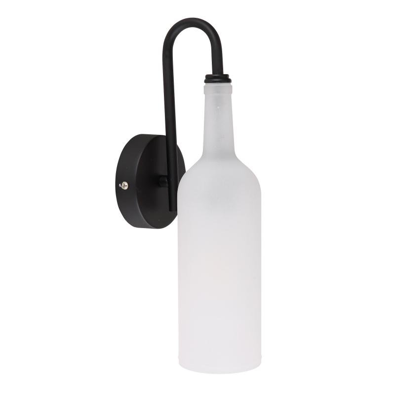 Nástěnné svítidlo, kov černý, akryl, saténová láhev, ŠxV: 100x350, H: 135, bez žárovky 1xE27 LED, max. 8W 230V