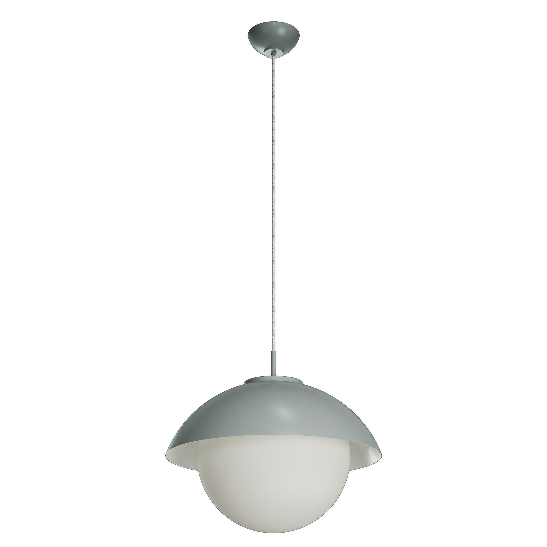 Šedé závěsné LED svítidlo ON/OFF s dekorativním límcem a skleněné stínidlo TRIPLEX OPAL. Textilní kabelový závěs s vnitřním nosným lankem o délce 100 cm.
