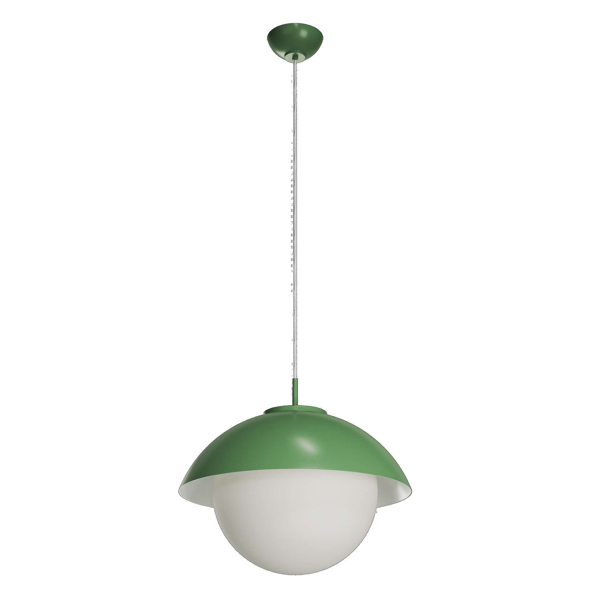 Olivově zelené závěsné žárovkové svítidlo ON/OFF s dekorativním límcem a skleněné stínidlo TRIPLEX OPAL. Textilní kabelový závěs s vnitřním nosným lankem o délce 100 cm.