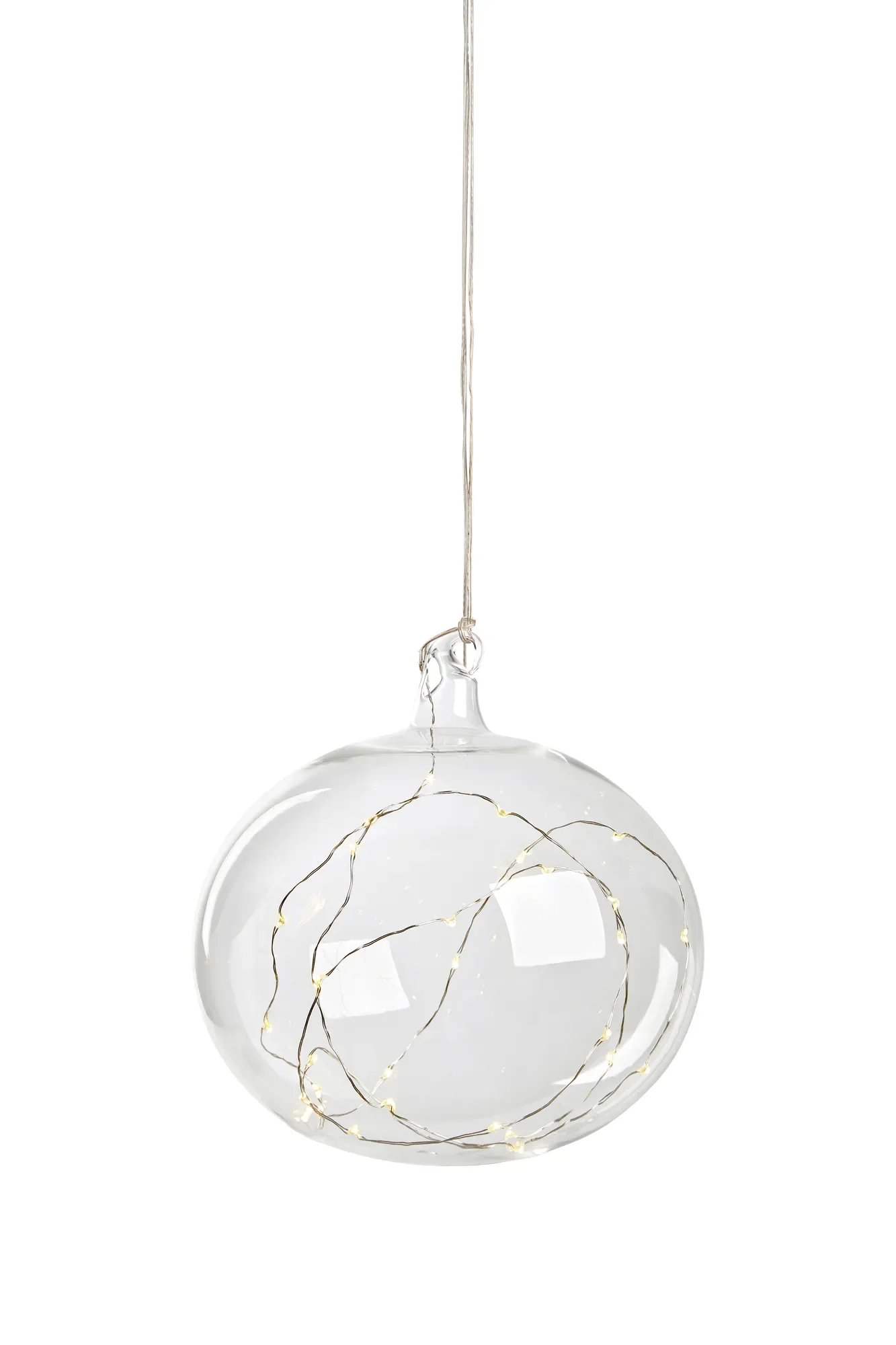 LED závěsná dekorace Lina od švédského výrobce Markslöjd představuje dokonalé spojení minimalistického designu a útulné atmosféry, kterou do vašeho interiéru vnese. Průhledná skleněná baňka s průměrem 18 cm zaujme propracovaným vnitřním LED světelným řetězem, který tvoří 20 drobných bodových LED diod v příjemném teple bílém odstínu. Lina je jedinečným dekorem nejen v období Vánoc, ale díky své čisté estetice a jemnému světlu najde uplatnění v moderních i tradičních interiérech po celý rok.