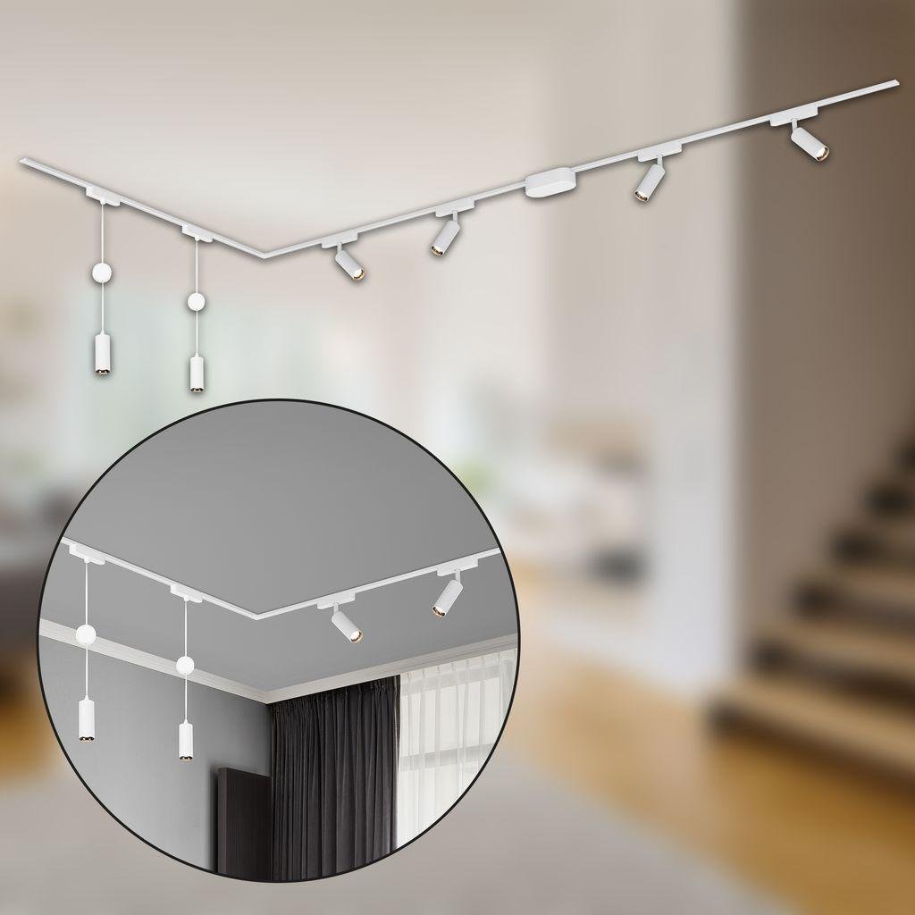 Luxtrail lištový systém, 4x LED spoty, 2x LED závěsná svítidla, do L, bílá - BRILO