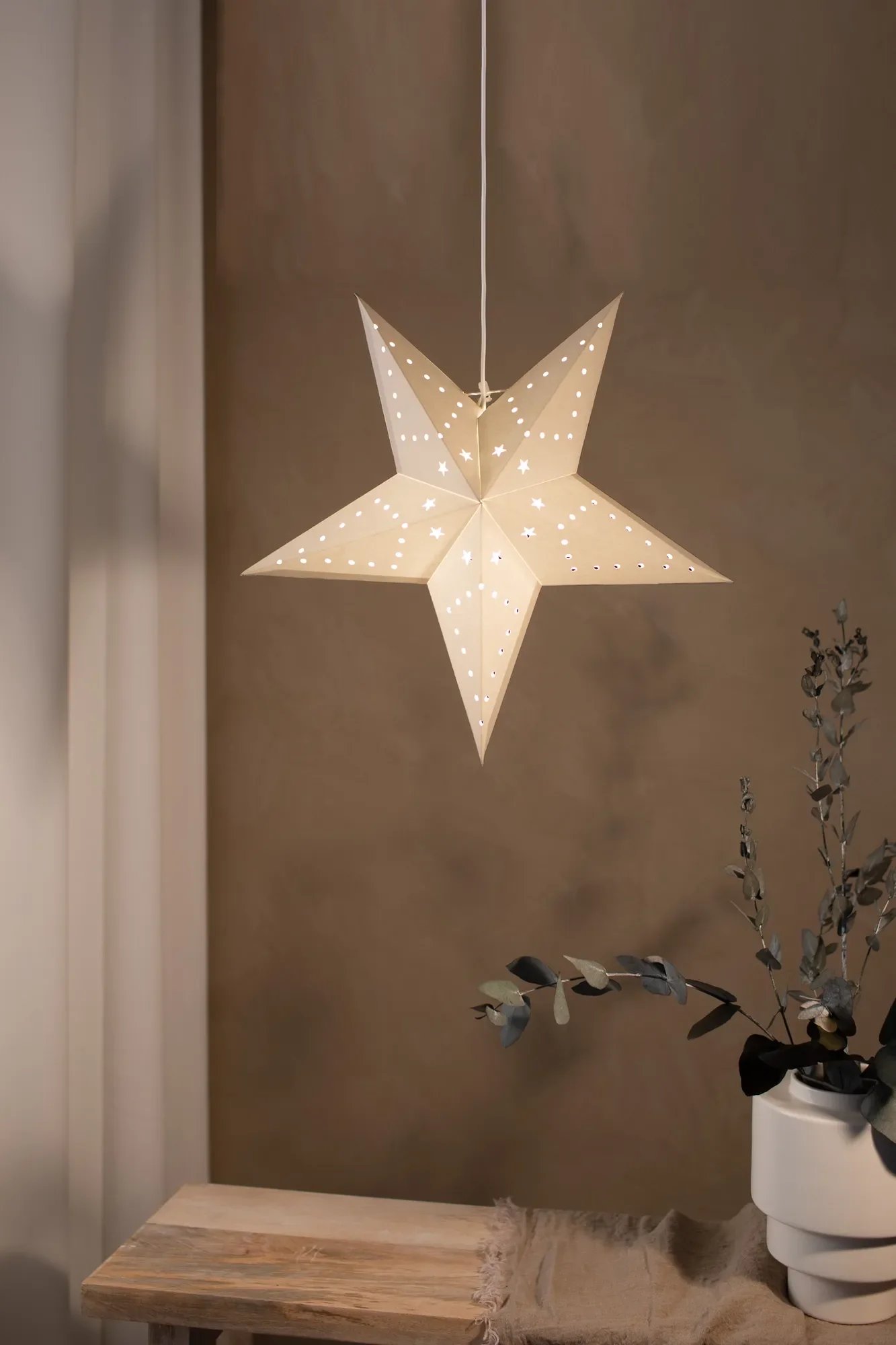 Závěsná hvězda Mikke je skvělou volbou pro každého, kdo hledá elegantní a zároveň výrazný vánoční prvek do svého domova. Doporučujeme ji zavěsit do okna, nad jídelní stůl nebo do vstupního prostoru, kde vynikne její originální perforace a kouzelné světelné efekty. Bílá barva je univerzální a snadno kombinovatelná s ostatními dekoracemi i moderním interiérem. Pokud chcete zvýraznit její designový efekt, použijte teple bílé LED žárovky s menším výkonem.