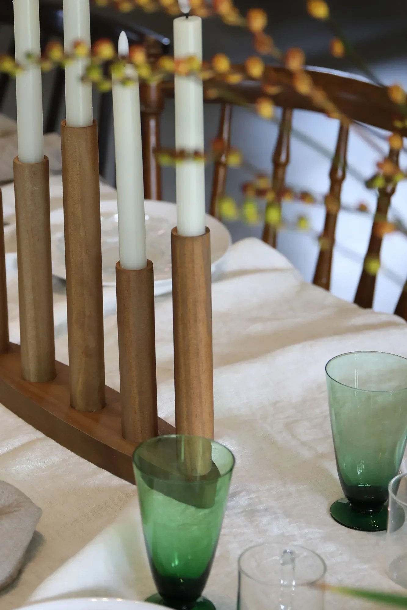 - Exkluzivní materiály – kombinace masivní borovice a vosku podtrhuje jedinečný vzhled a přirozený charakter svícnu.