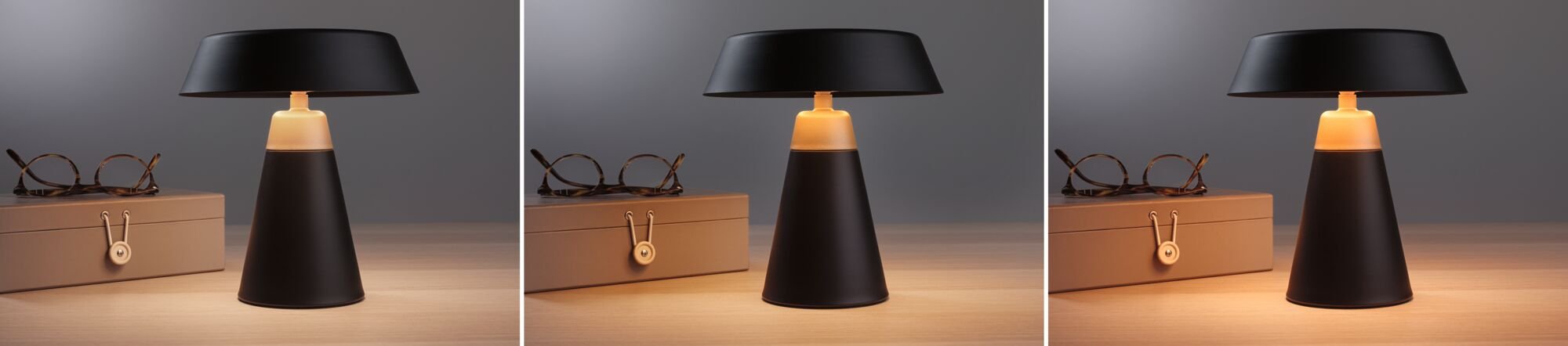 Světlo je směrováno převážně dolů a do okolí, což podporuje intimní a útulnou atmosféru. Světelný tok svítidla činí 95 lm, což jej řadí mezi dekorativní a orientační zdroje světla - není určeno pro hlavní osvětlení prostoru, ale pro zvýraznění zón, stolů nebo relaxačních koutů. Teplota chromatičnosti je nastavitelná ve třech krocích od teplé bílé až po zlaté světlo (1800-2700 K), což umožňuje volit mezi jemnějším a výraznějším podáním atmosféry podle potřeby. Stmívání a změna teploty chromatičnosti se ovládají dotykovým panelem přímo na svítidle. Paměťová funkce uchovává poslední nastavení při dalším zapnutí.