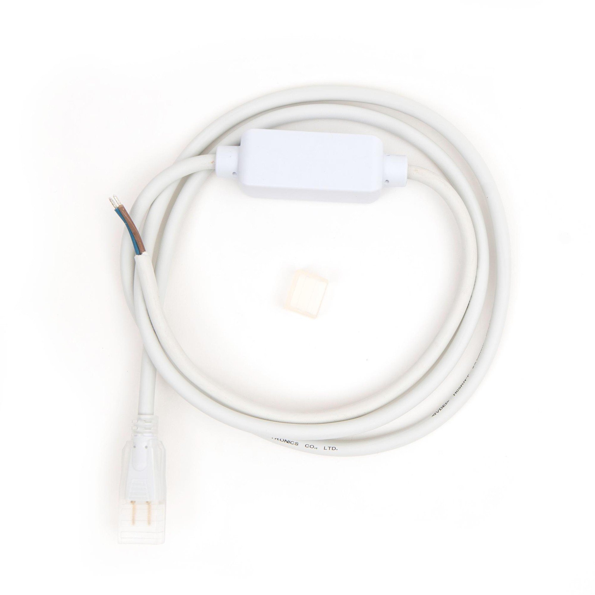 Kabel má bílou barvu a délku 1500 mm. Je vybaven pojistkou a zakončen otevřeným koncem pro snadné napojení na LED pásek. Součástí je také koncovka. Konstrukce je navržena s ohledem na UV odolnost, což umožňuje použití i ve venkovních podmínkách.