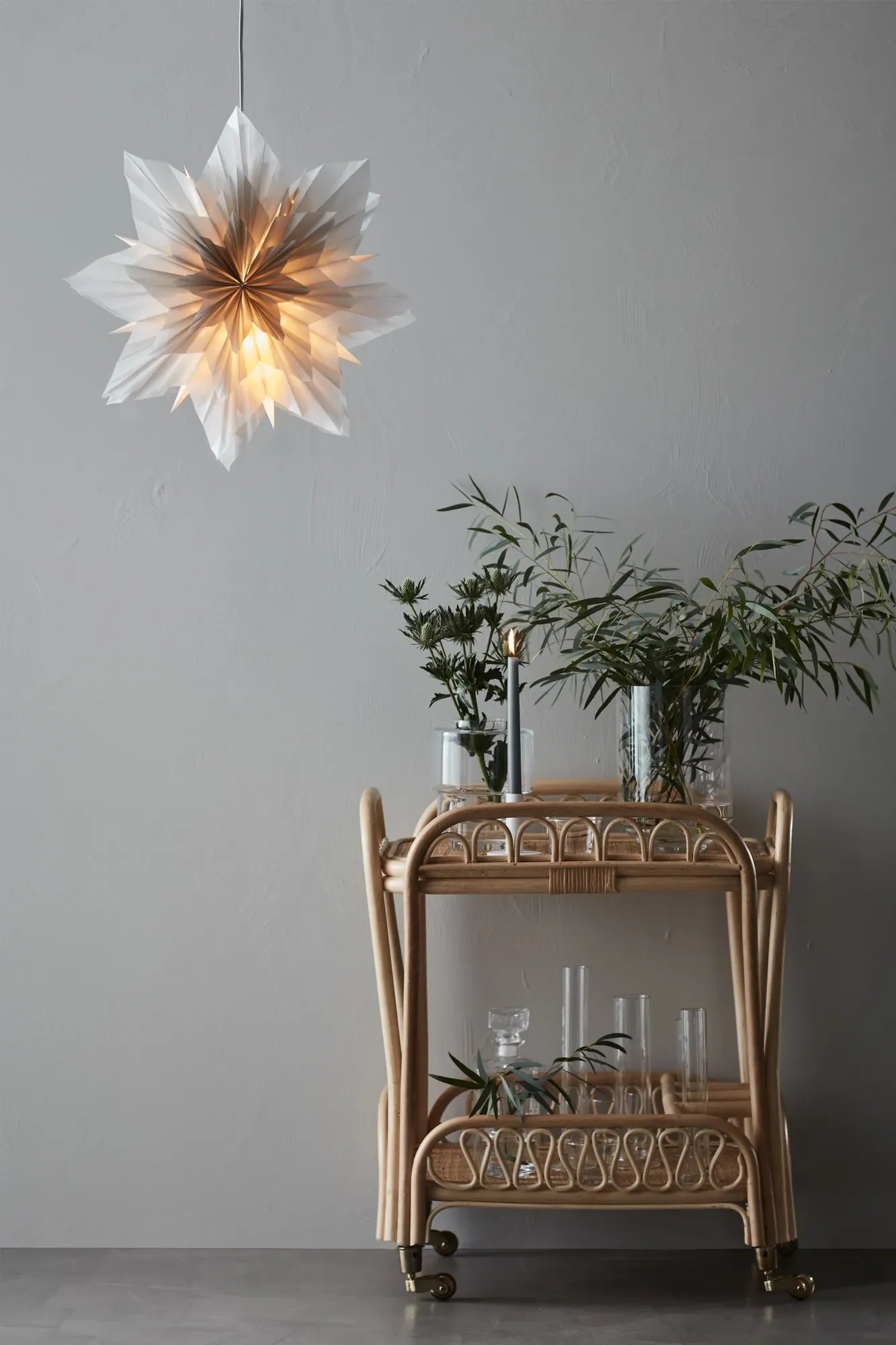 Závěsná hvězda Neela je nejen designovým, ale také ekologickým řešením pro slavnostní dekorace – papír je recyklovatelný a lehký.