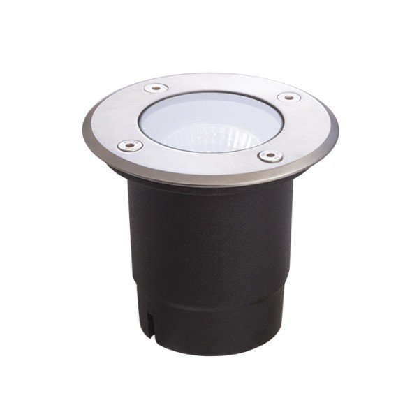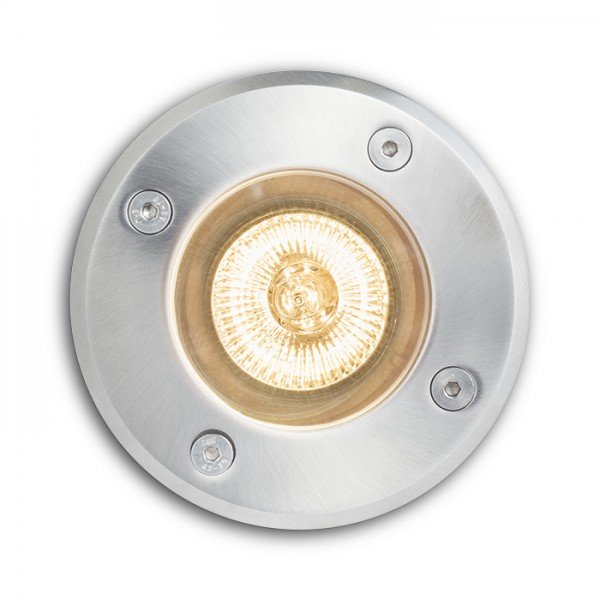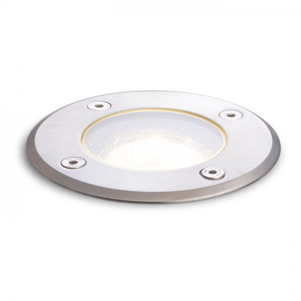 Venkovní zápustné svítidlo do země. Čiré krycí sklo (průměr skla 6 cm).