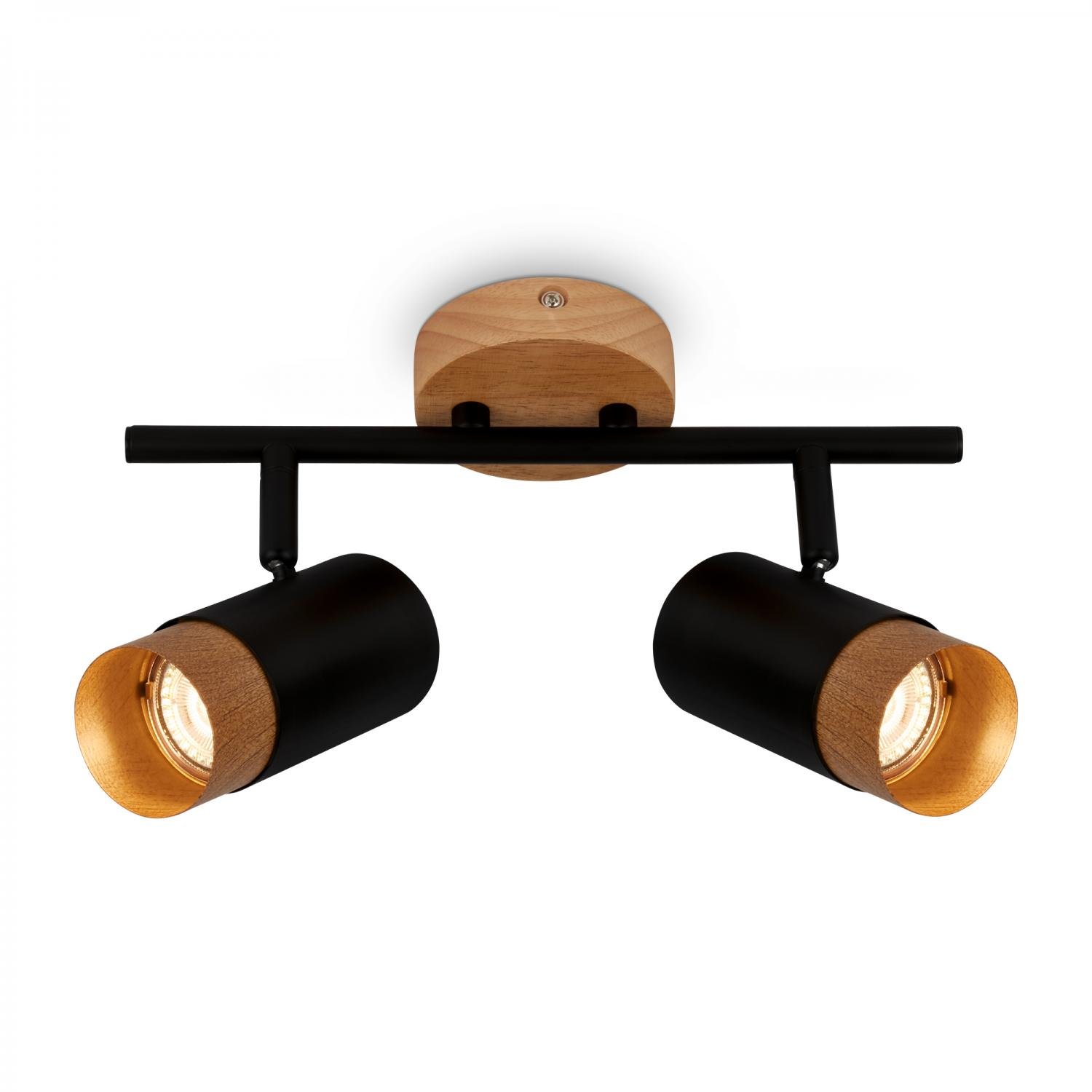 Plek nástěnné svítidlo, nastavitelné, dřevo, 2-ramenné, černé – BRILONER