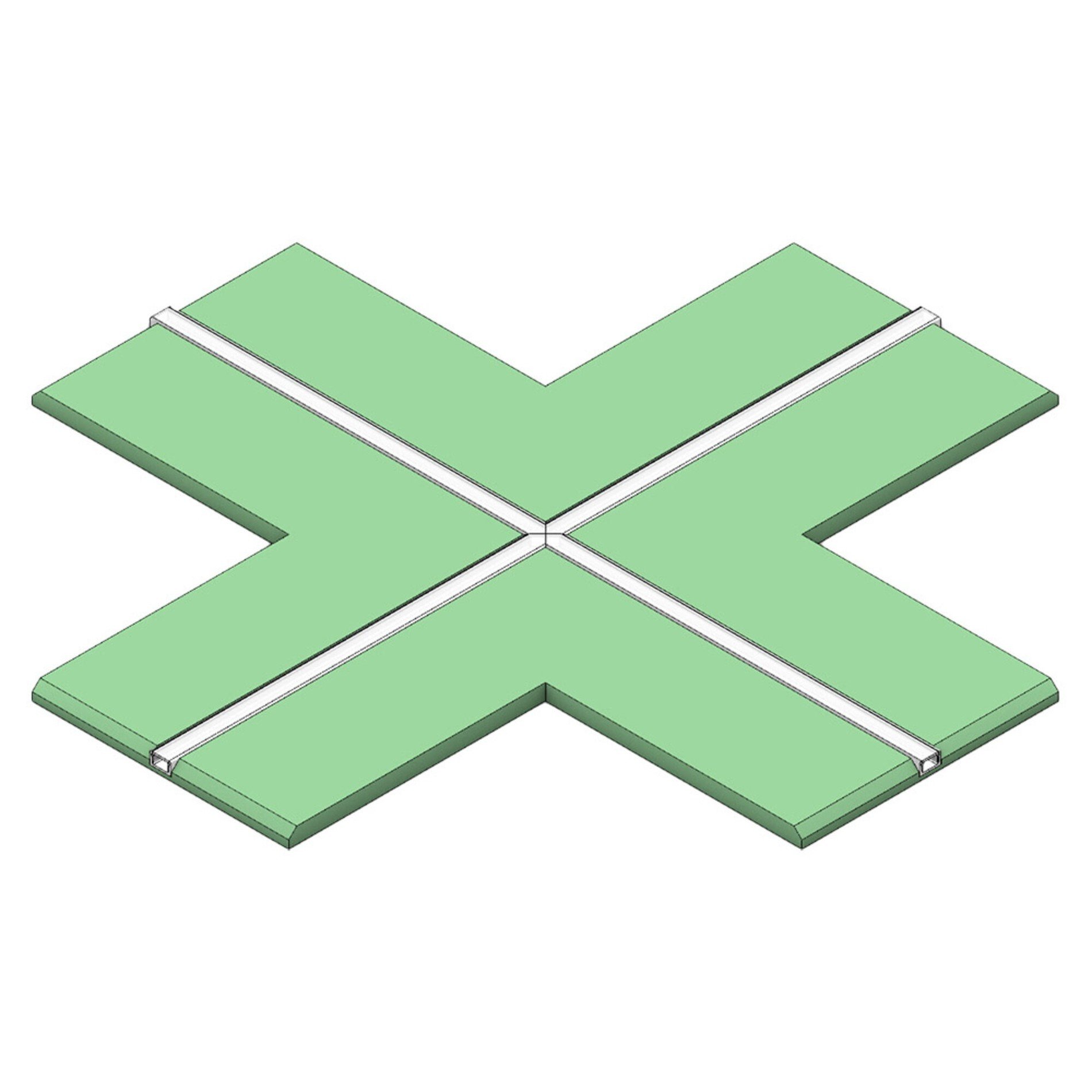 Tento stavební prvek kombinuje sádrokartonovou desku s integrovaným hliníkovým profilem pro LED pásky ve tvaru kříže. Slouží k vytváření liniového osvětlení zapuštěného do stropů nebo stěn, kde je požadován čistý detail bez viditelného přechodu mezi světlem a povrchem konstrukce. Uplatnění nachází zejména v návrzích interiérů, kde je kladen důraz na minimalistické a architektonicky čisté řešení světelných linií.
