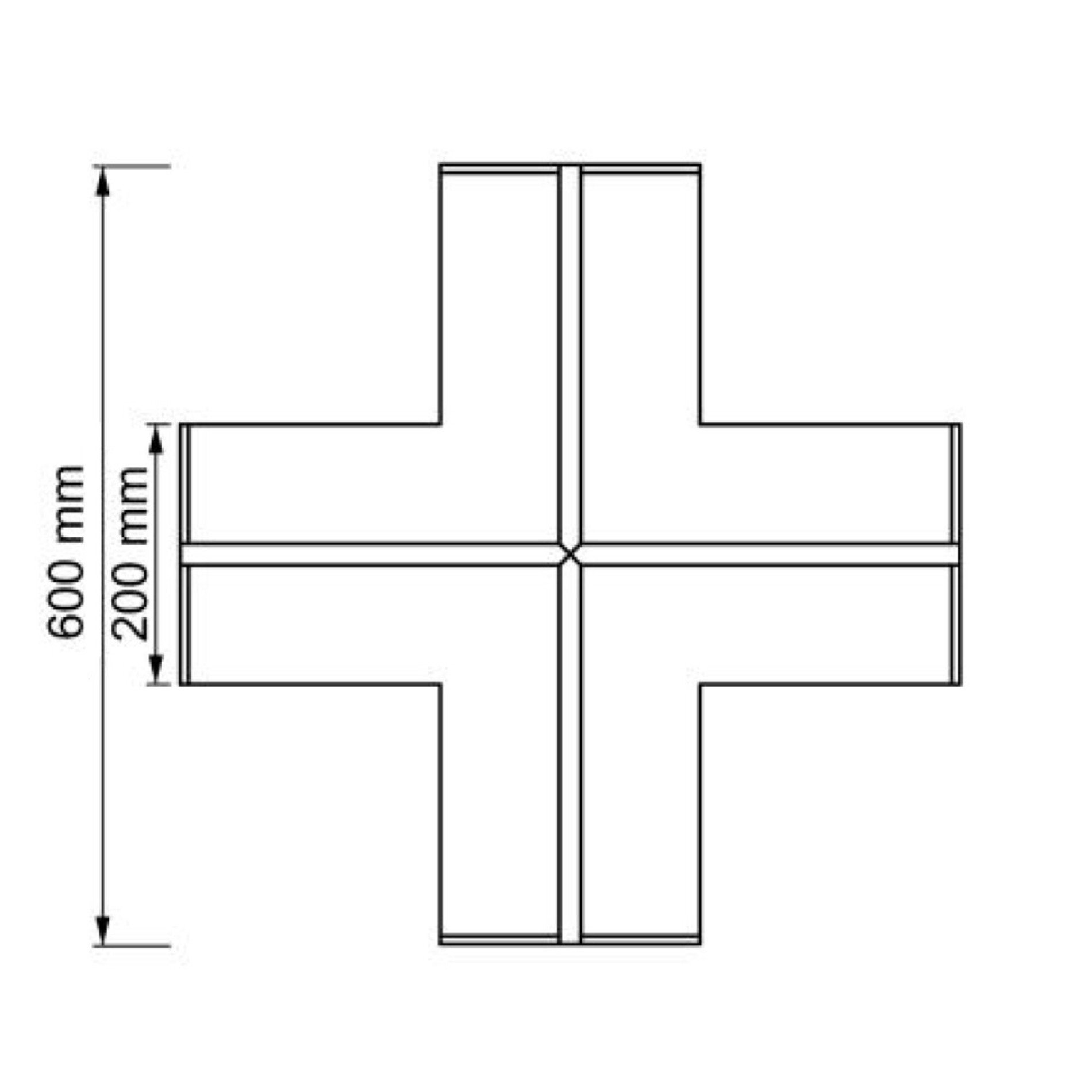 Modul je tvořen deskou ze sádry a hliníkovým profilem, který umožňuje přesné a stabilní uchycení LED pásků. Povrchová úprava sádrokartonu je připravena pro finální tmelení a malbu, což zajišťuje bezproblémové začlenění do okolní konstrukce. Tvar kříže umožňuje vytvářet pravoúhlé světelné linie v prostoru.