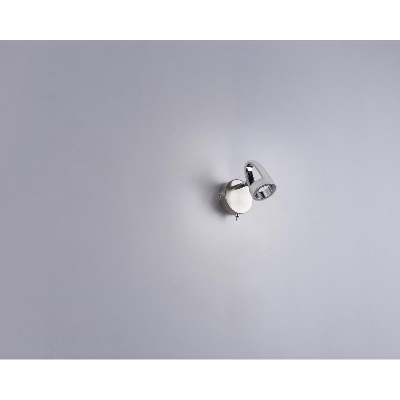 Nástěnné svítidlo, kov, nikl, chrom, satin plast, vypínač, ŠxV:90x140, H:150, včetně 1xLED 5W 230V, 310lm, 3000K.