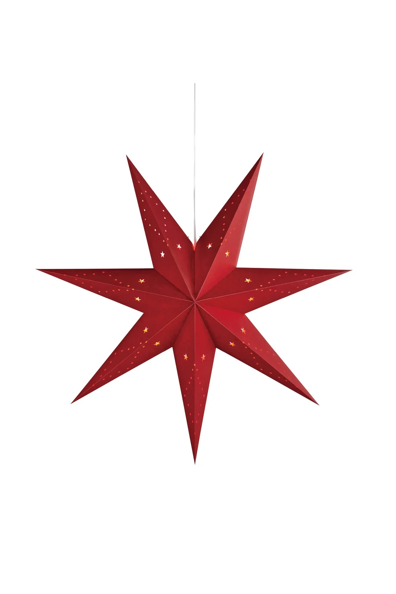 Saturnus je ikonická závěsná hvězda o impozantním průměru 75 cm z dílny švédské značky Markslöjd. Je vyrobena z kvalitního červeného papíru s dekorativními otvory, které po rozsvícení vytváří atraktivní světelný efekt. Tento nadčasový kousek zútulní váš domov nejen během Vánoc, ale i v průběhu zimní sezóny. Výrazná barva a precizní provedení z ní činí skutečný designový solitér vhodný do moderních i tradičních interiérů.