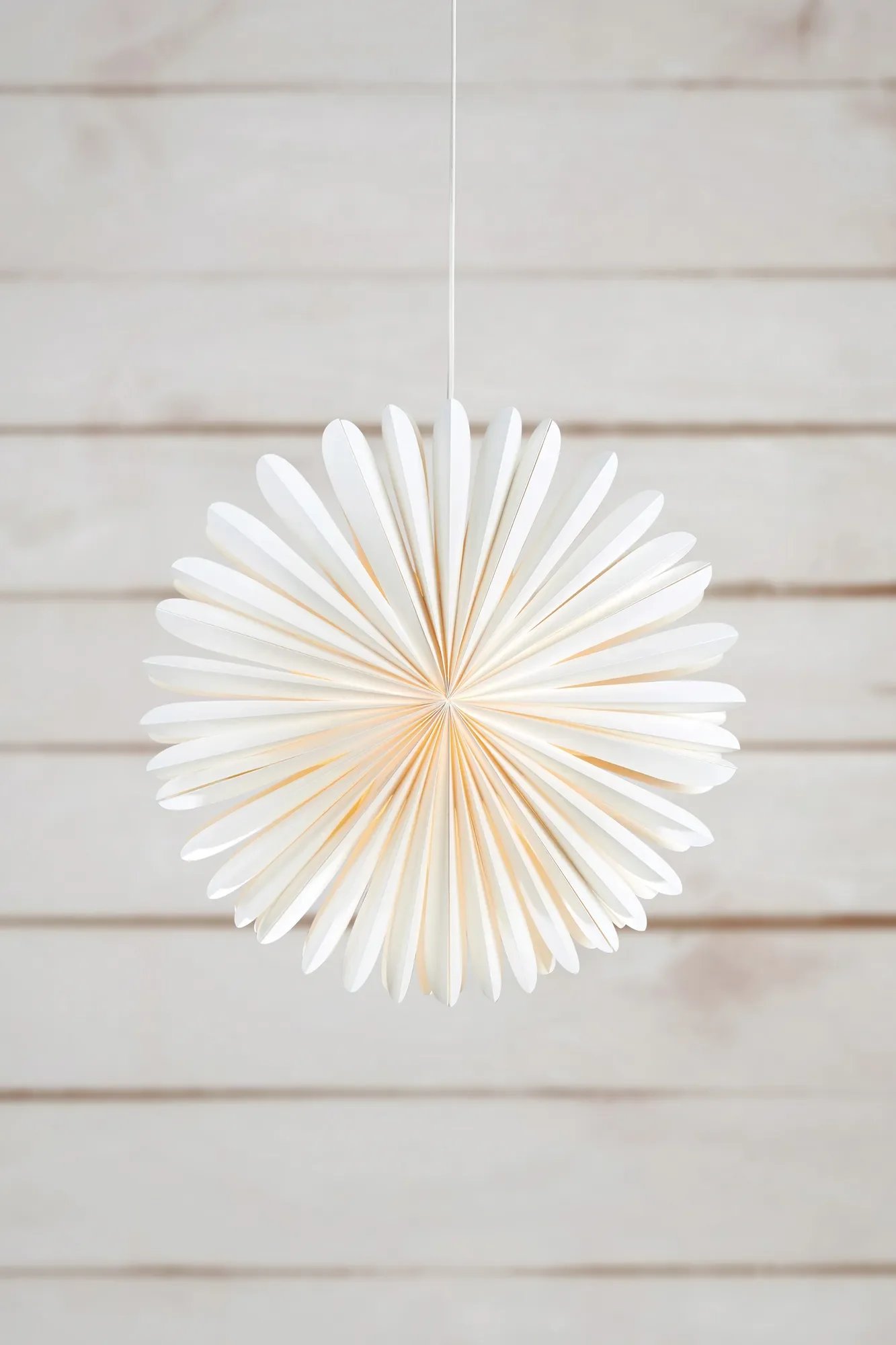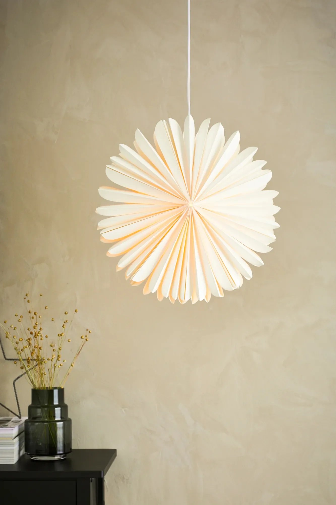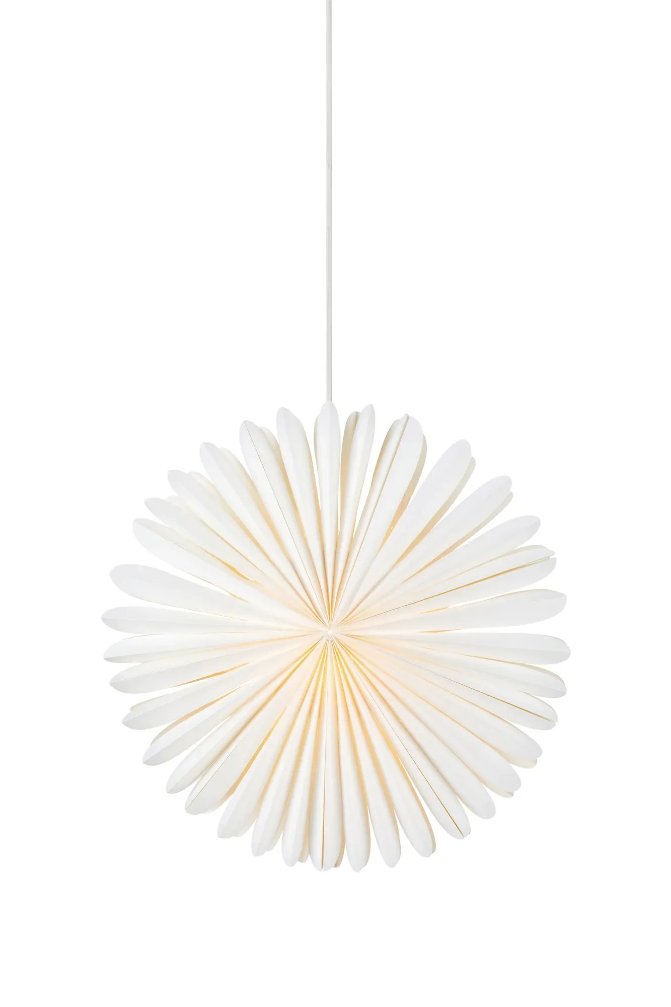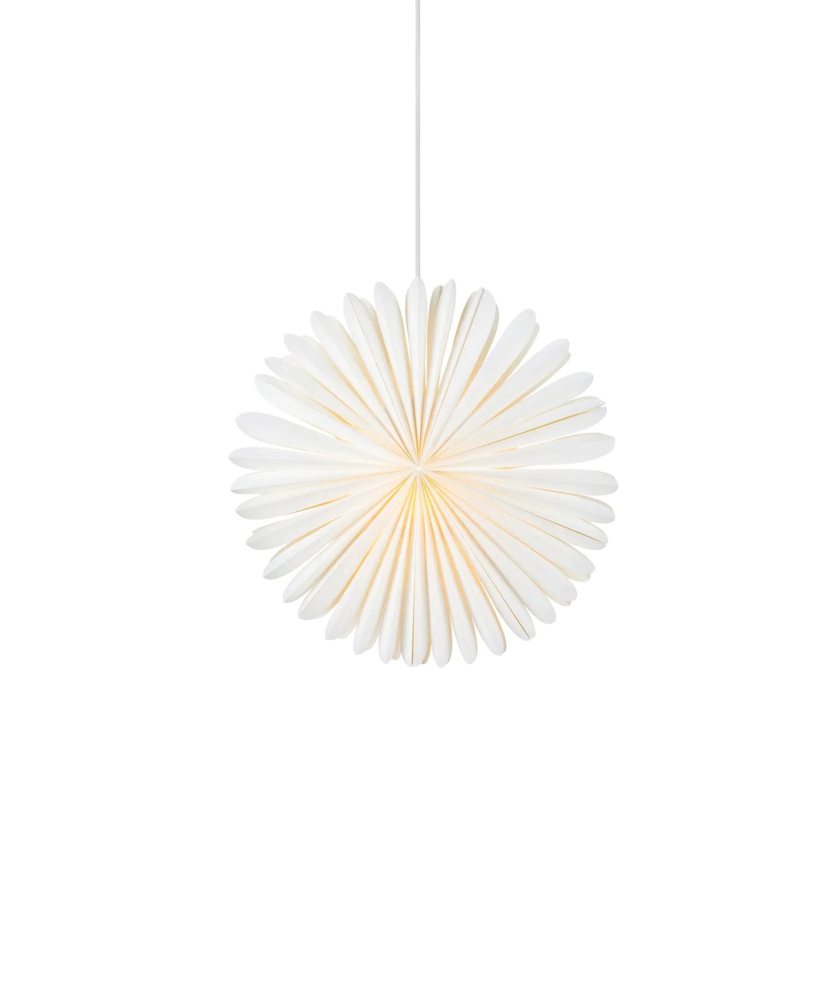 Závěsná hvězda Sol od renomované značky Markslöjd je jedinečný dekorativní prvek, který přináší do interiéru atmosféru stylové pohody a svátečního tepla. Precizně složený papír v bílé barvě vytváří dojem rozjasněného slunce, které decentně ozdobí každý moderní i klasický prostor.