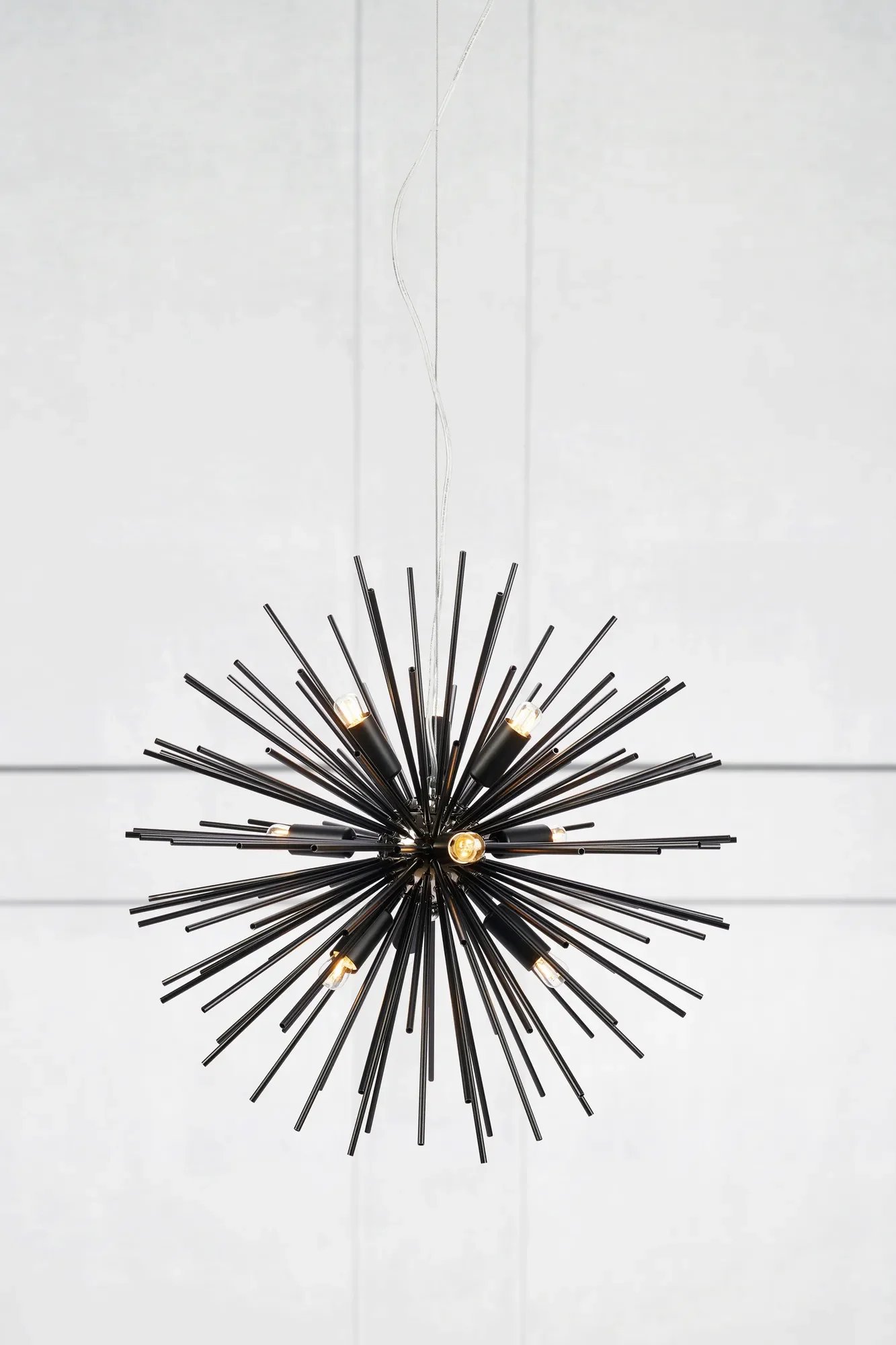 Závěsné svítidlo Markslöjd Soleil v černém provedení je skutečnou hvězdou každého moderního interiéru. S devíti rameny z černého kovu vytváří unikátní světelný efekt a stává se dominantním prvkem nad jídelním stolem či v obývacím pokoji. Minimalistický design v kombinaci s výraznou kompozicí dělá ze svítidla Soleil ideální volbu pro milovníky výrazných a nadčasových řešení v oblasti osvětlení.